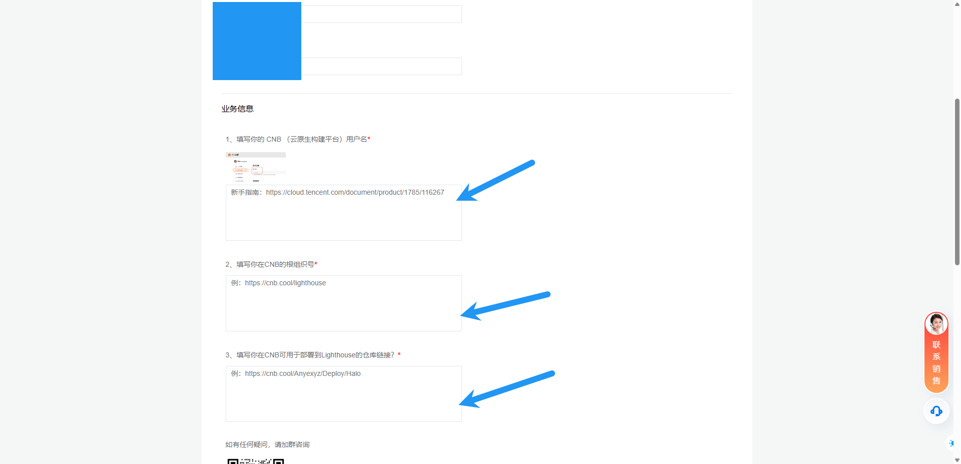 拉到问卷下方,填写你的 CNB用户名 ; 组织名 ; 你跟随本文学习然后自己push的仓库地址 ,点击提交申请,等待审核(可能需要 1~5 个工作日)