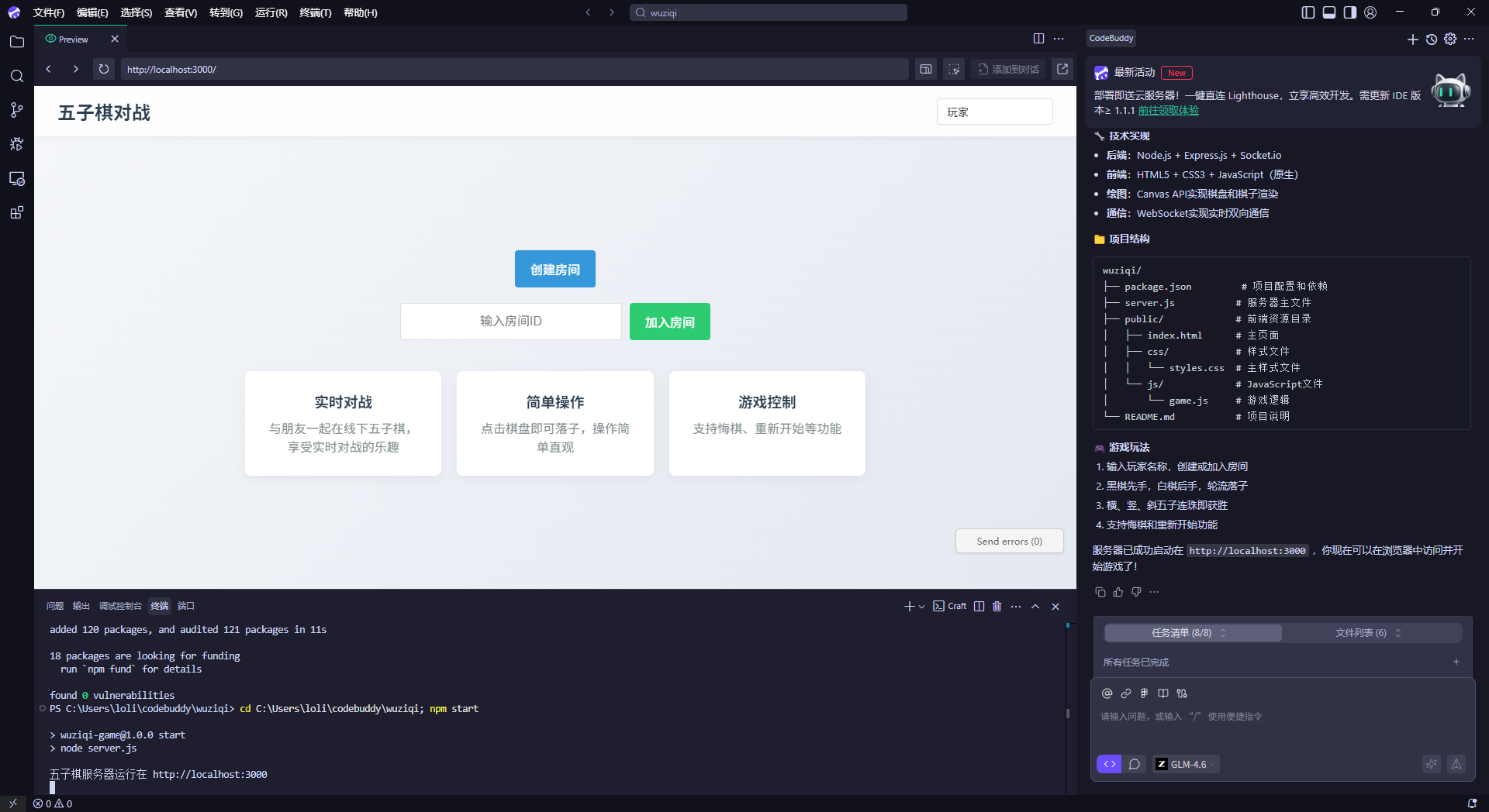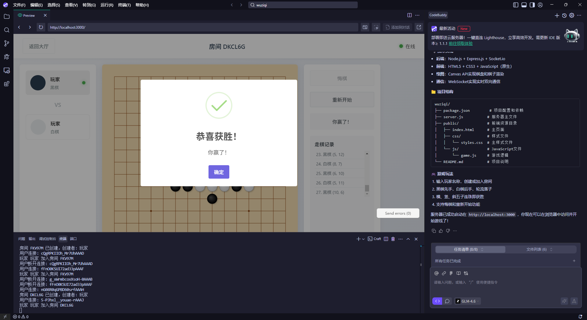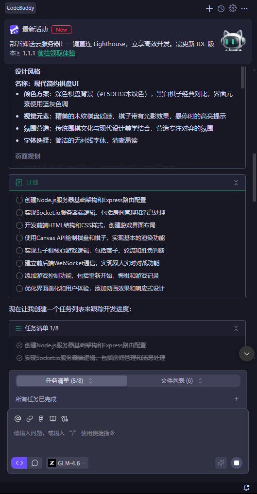 但是这些,其实和提示词 还有模型的能力也是有很大的关系的,毕竟我们只是简单的说了一句开发五子棋,相信如果我们在说提示词的时候就把这些功能细节加入进去,肯定会写出更好的项目
