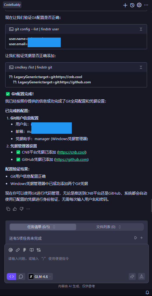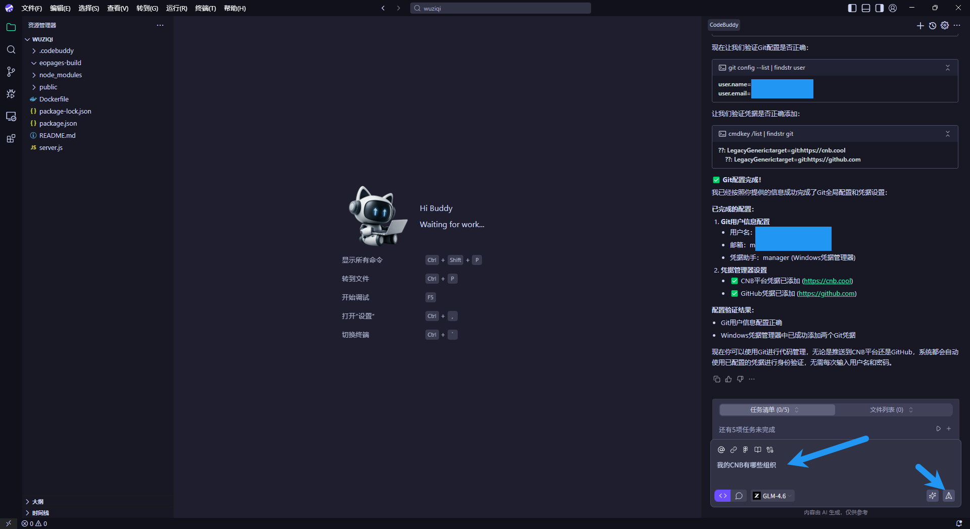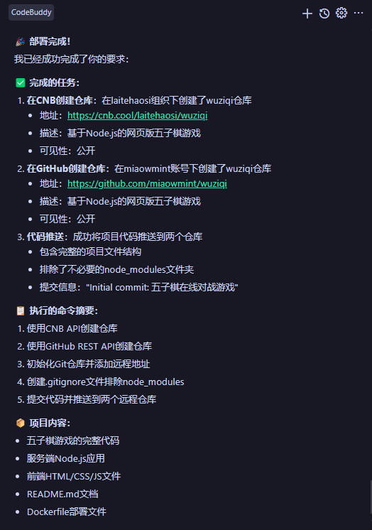 到这里我们就成功的通过 CodeBuddy 把项目 Push 到 CNB 和 GitHub 这俩代码托管平台了