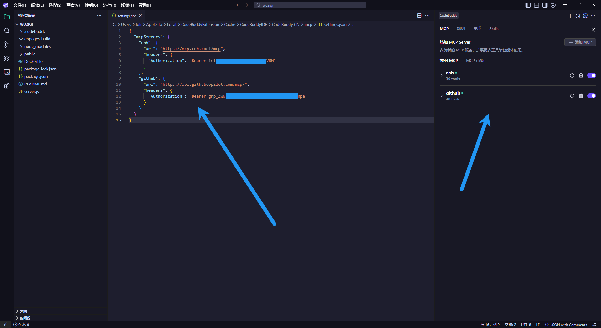全部配置好以后,接下来就是把项目Push到 CNB 和 Github 了,但是在这之前,我们还需要配置一下 CNB 和 Github 的 MCP ,以便于让AI更方便的获取组织,仓库等信息