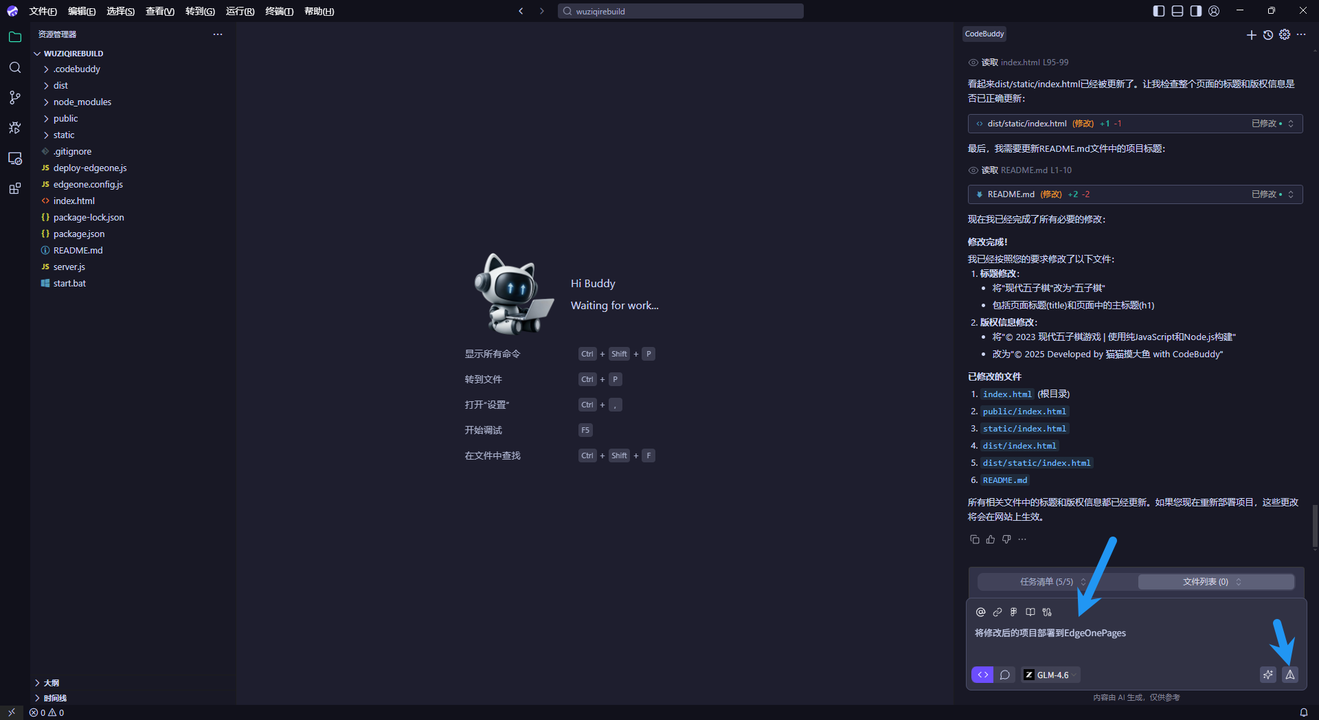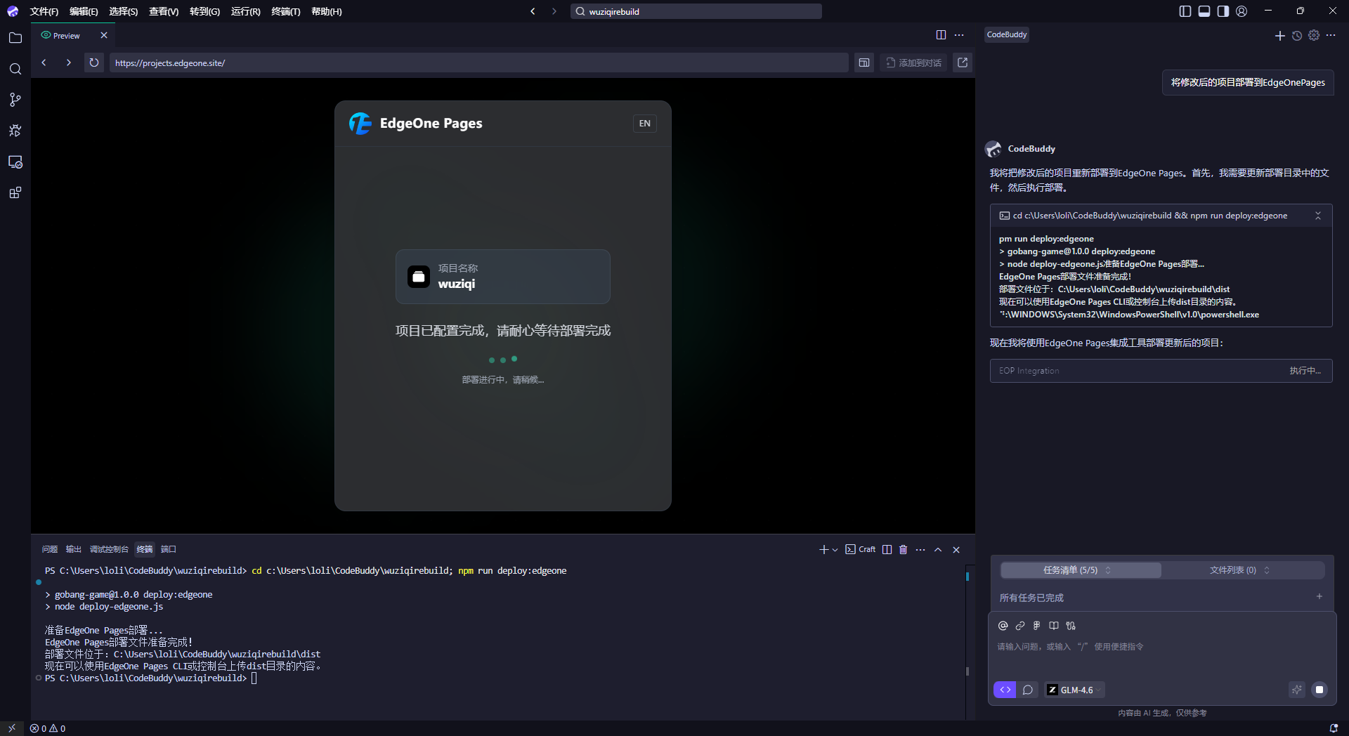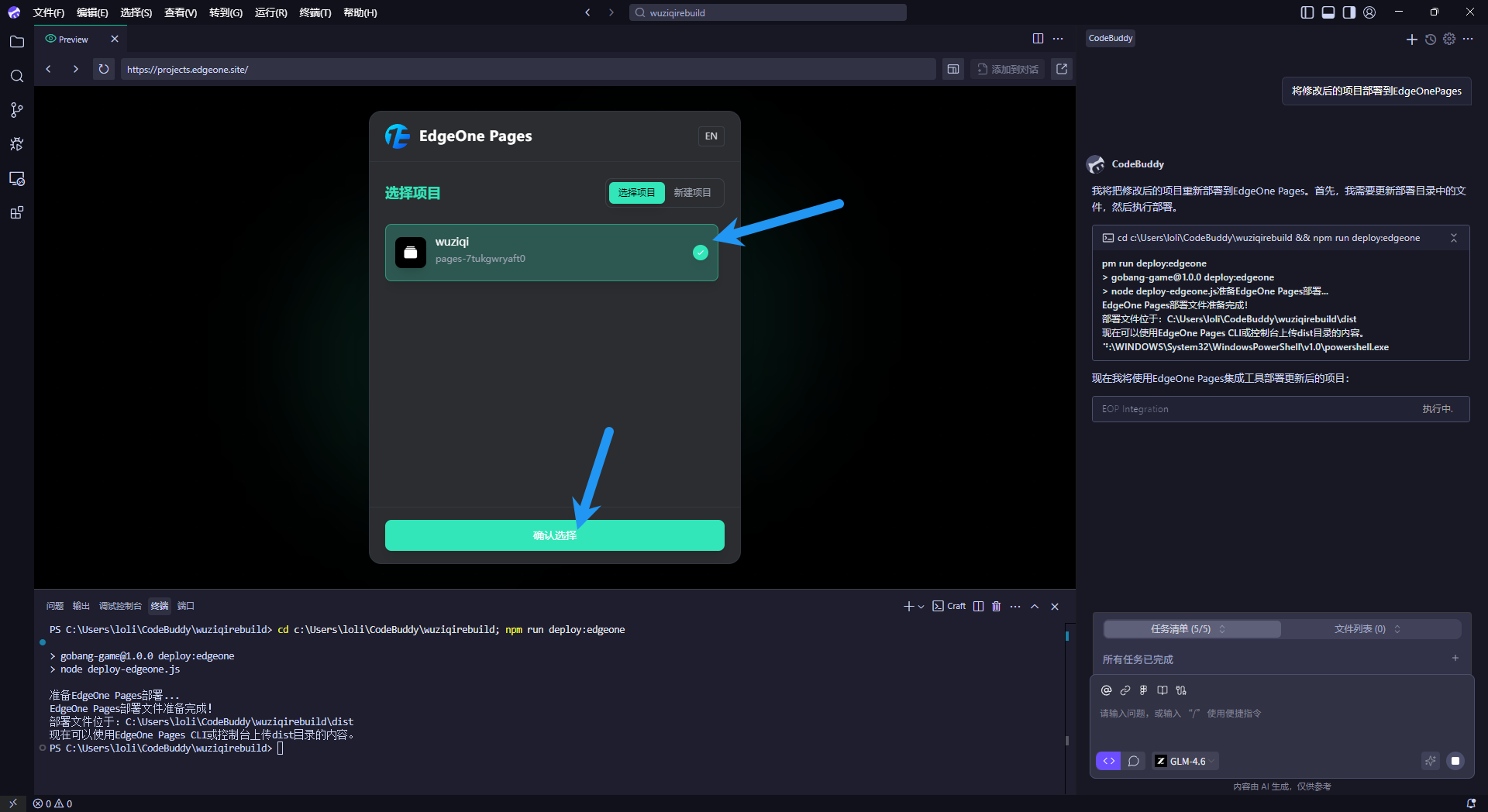 给AI发送 将修改后的项目部署到EdgeOnePages