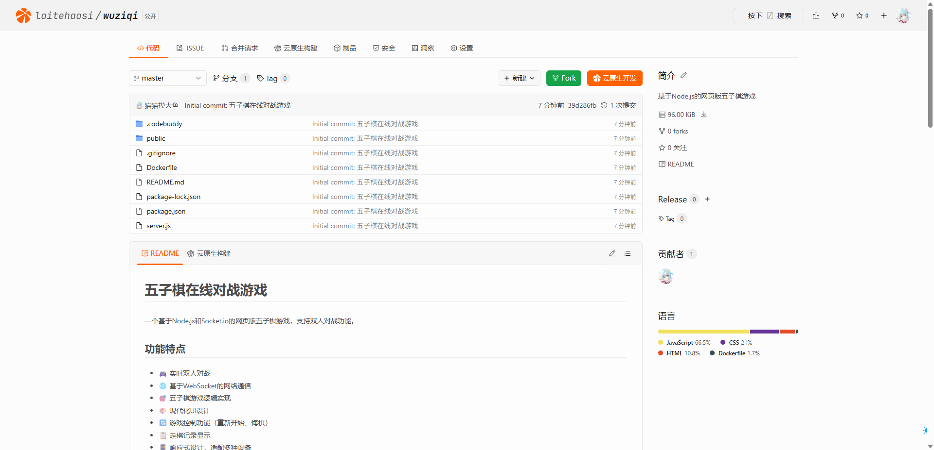访问 https://cnb.cool/laitehaosi/wuziqi ,嗯,可以,Push成功了