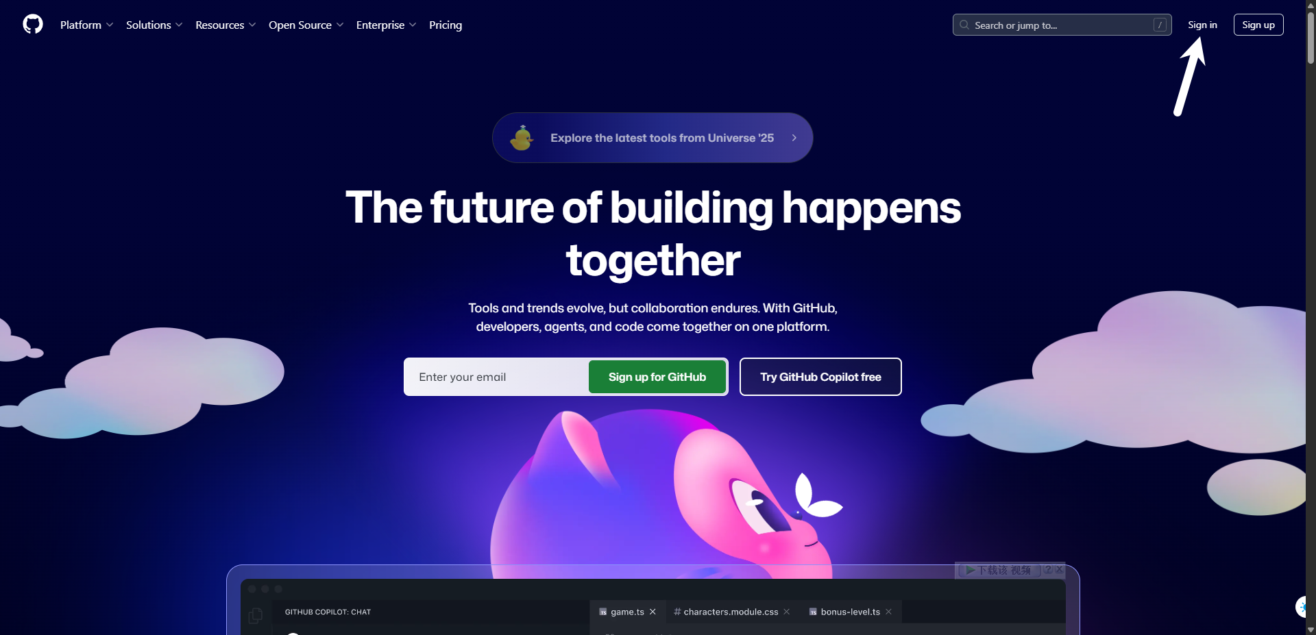 点击 Sign in ,登录,这里就不多赘述了,能用上 GitHub 的不至于不会登录