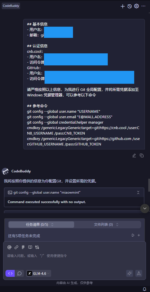 其实如果你访问令牌给的权限足够的话,也可以实现使用 CodeBuddy 帮你处理 ISSUE 等更高端的玩法,不过我没试过,感兴趣的大佬们可以试试,在这里就不多说了