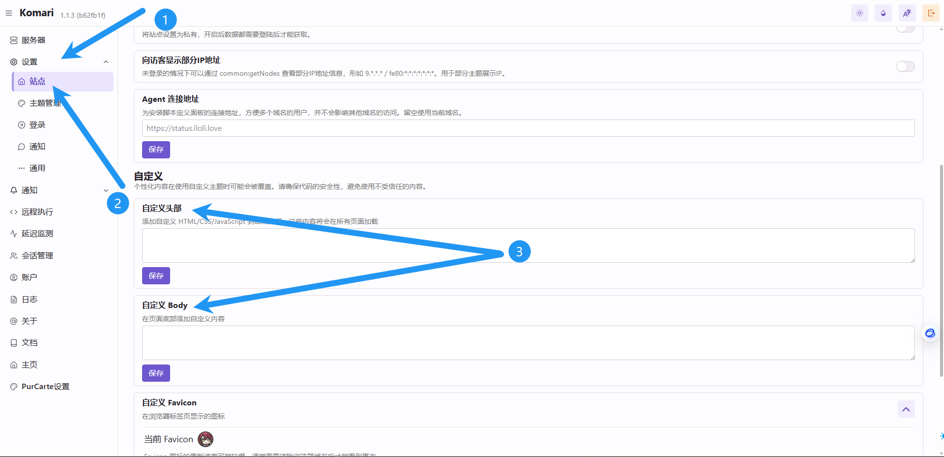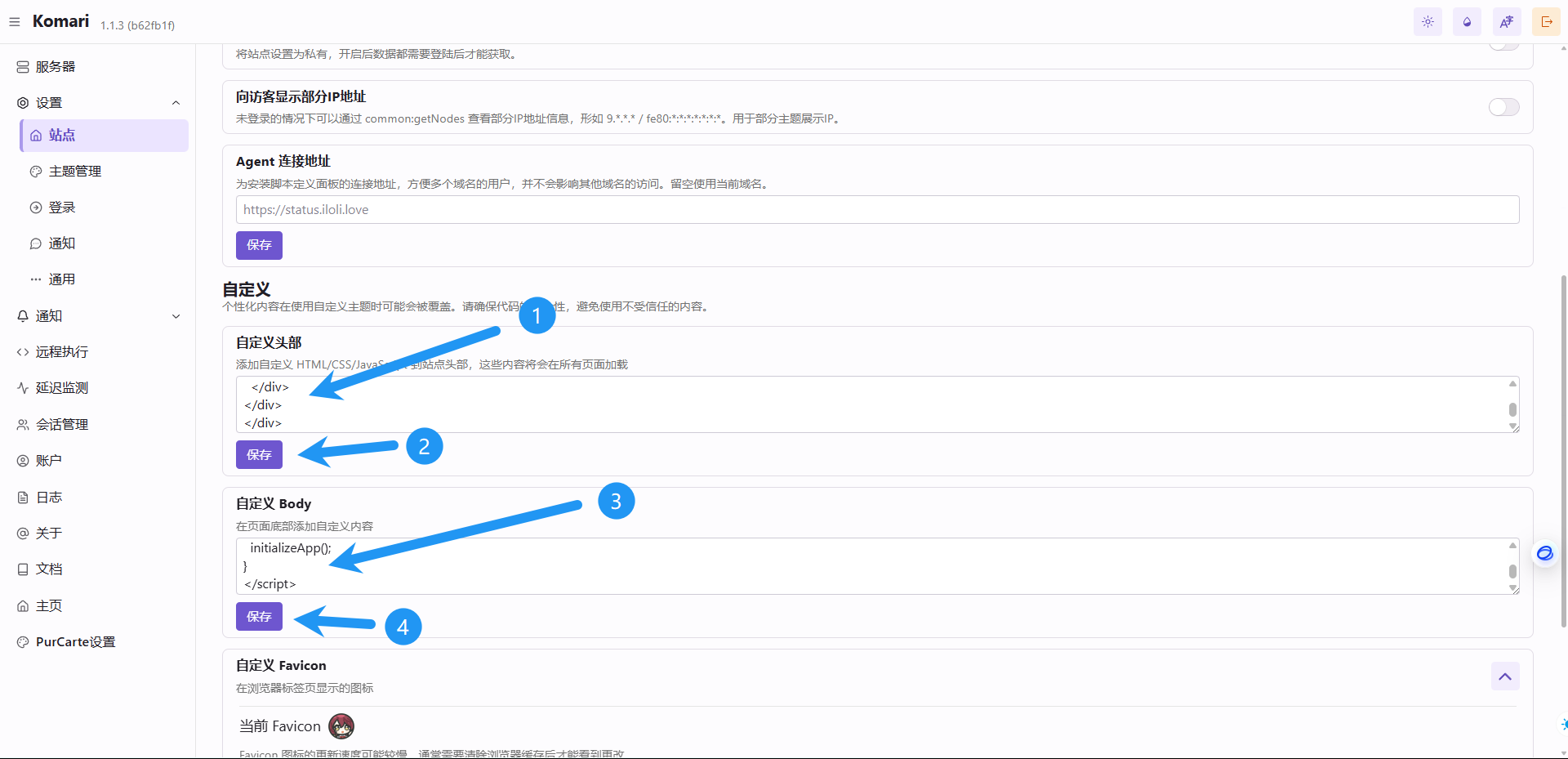 3.3 (可选)配置KomariBeautify - 基于PurCarte主题的自定义代码