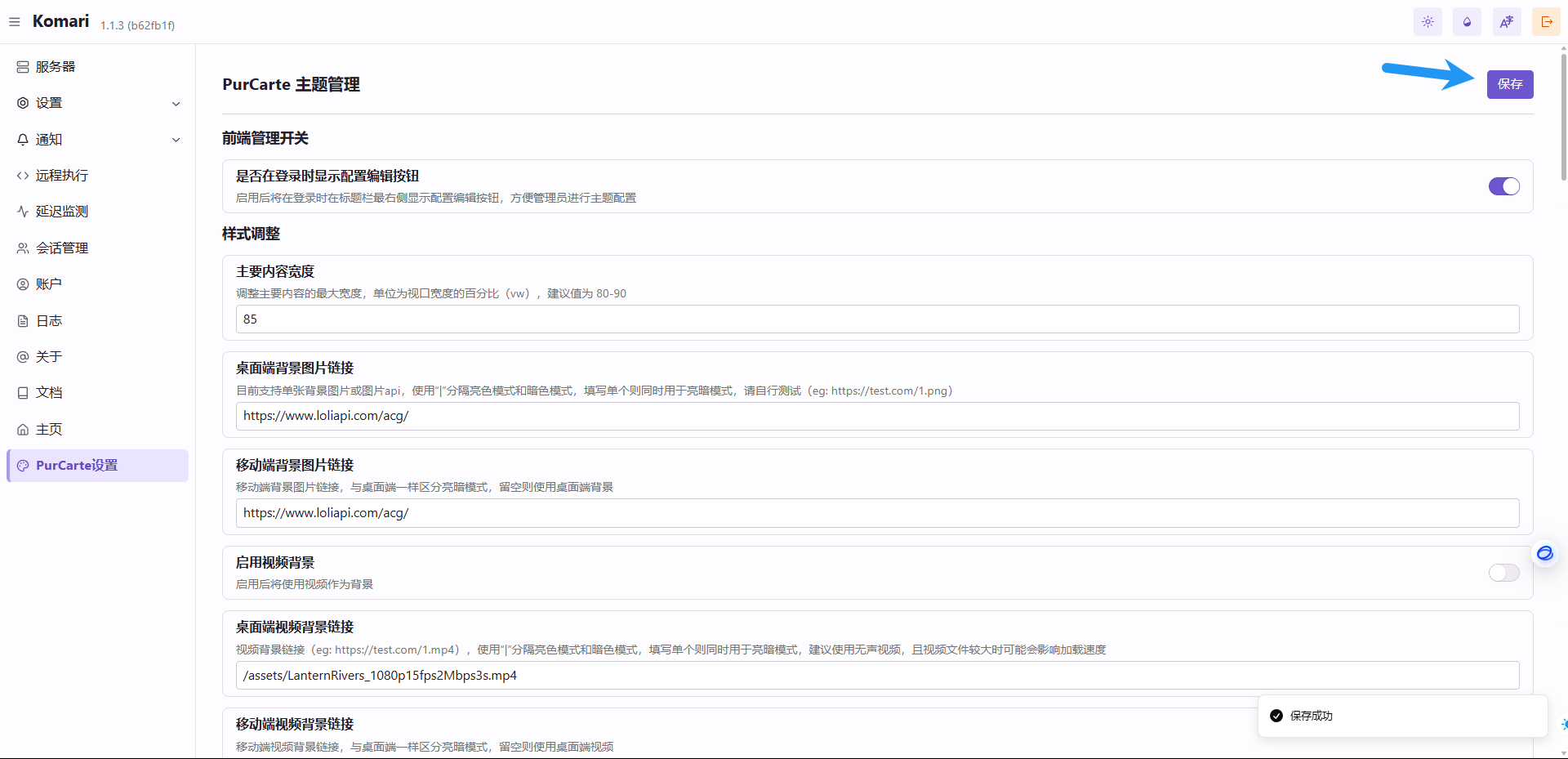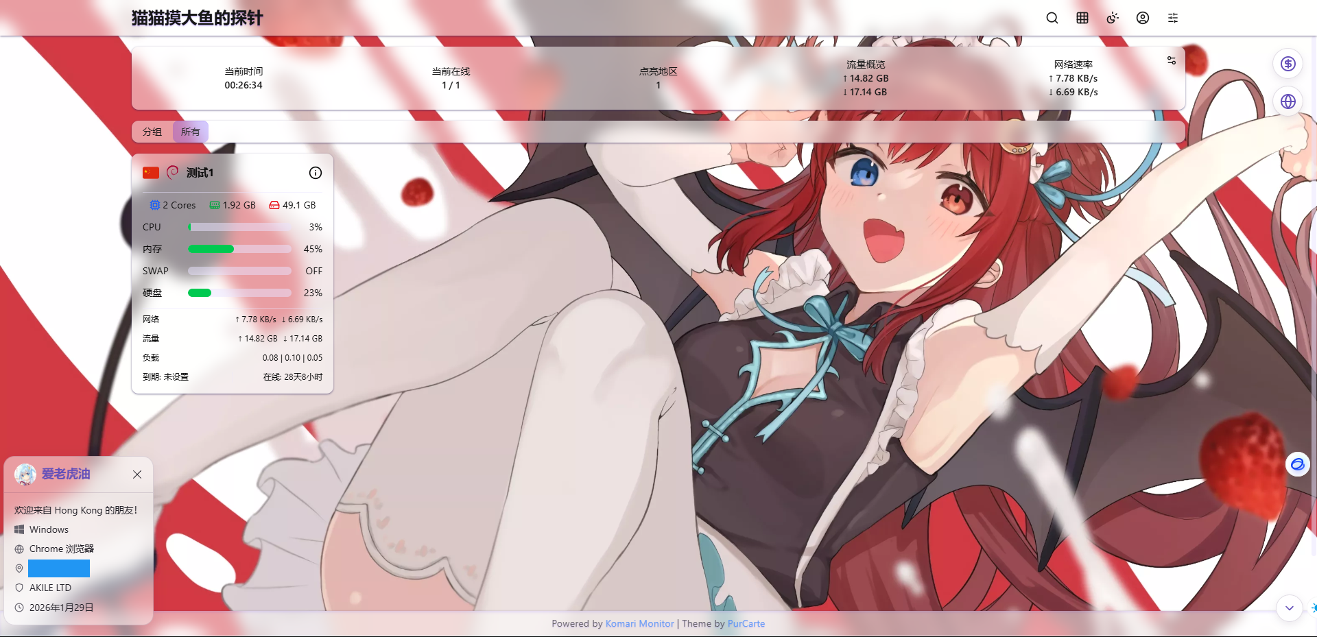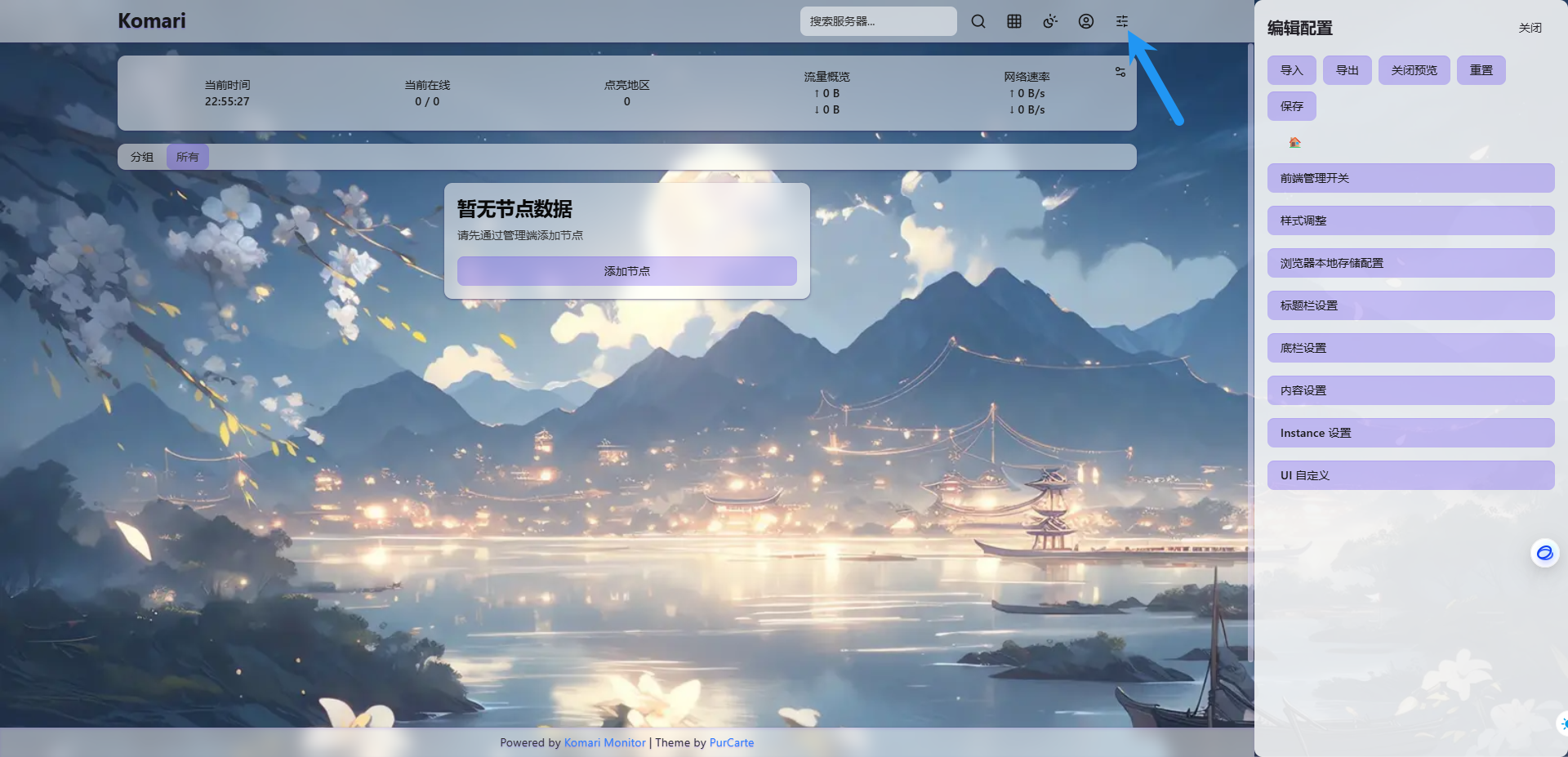 本文基于 Komari 1.1.3 版本,Purcarte主题 1.2.5 版本,KomariBeautify 0.4.2 版本