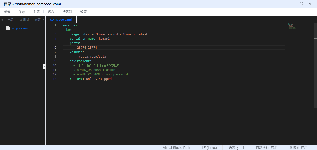 首先是部署Komari,这里我们介绍docker compose 部署和 1panel 部署两种方式(2.1与2.2两种方式二选一即可)
