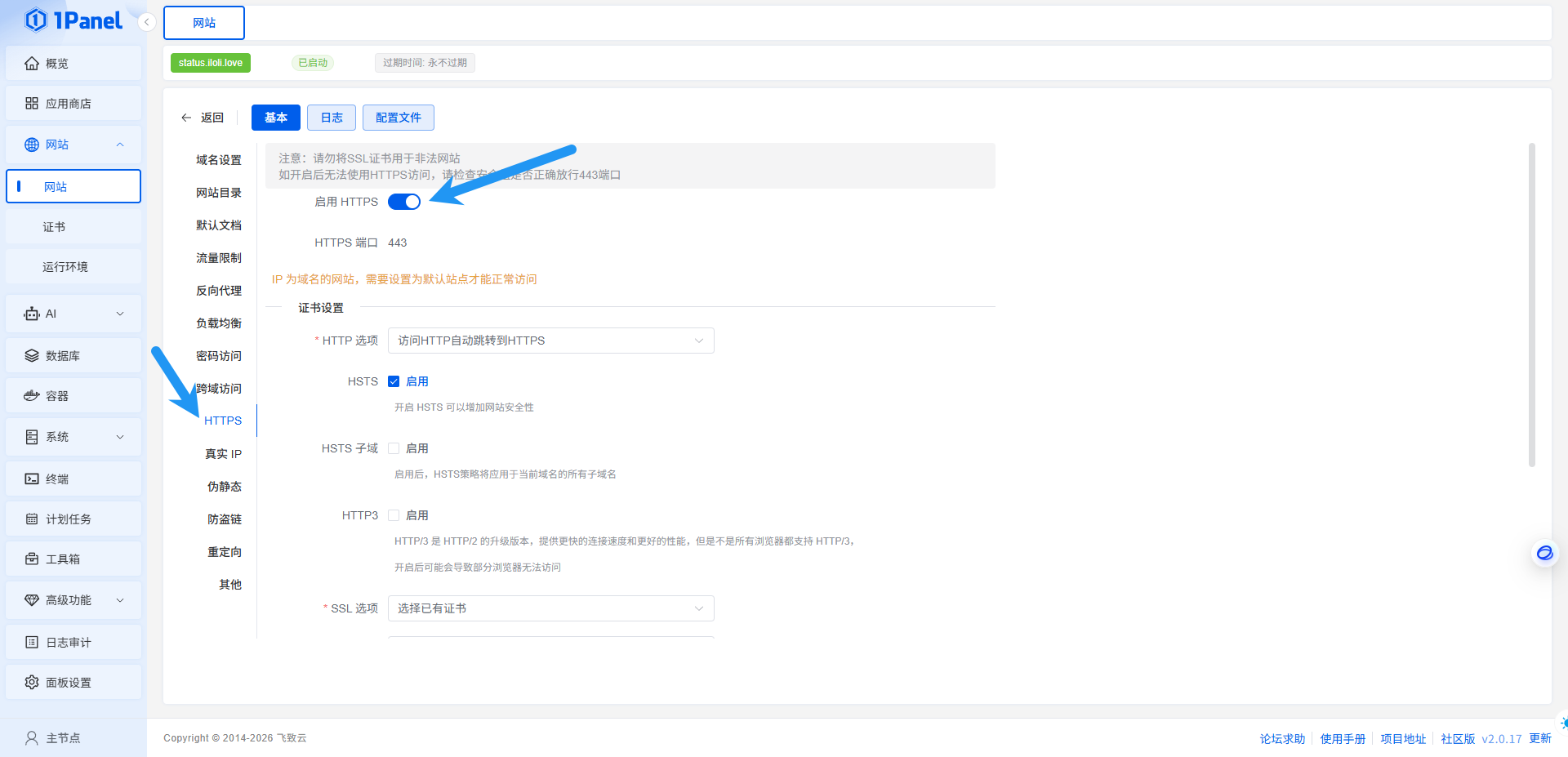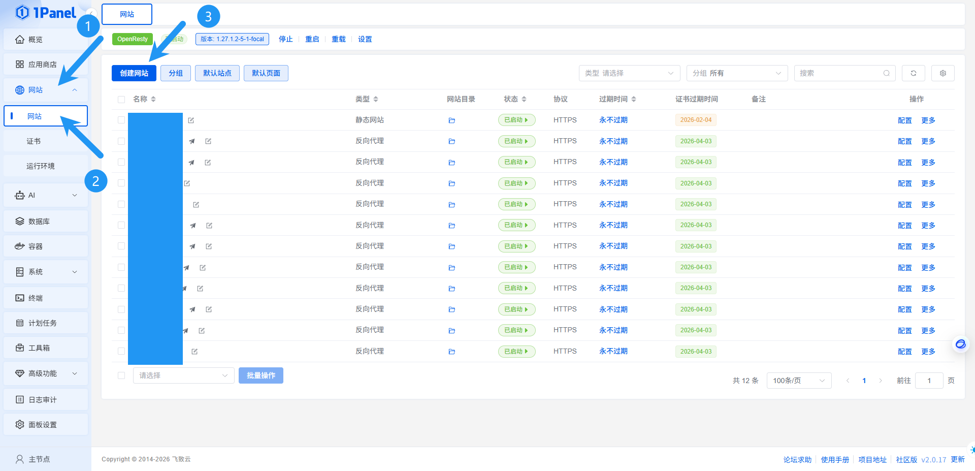 1panel面板的反代模板内容很全面,所以为了方便,这里我使用1panel配置反代