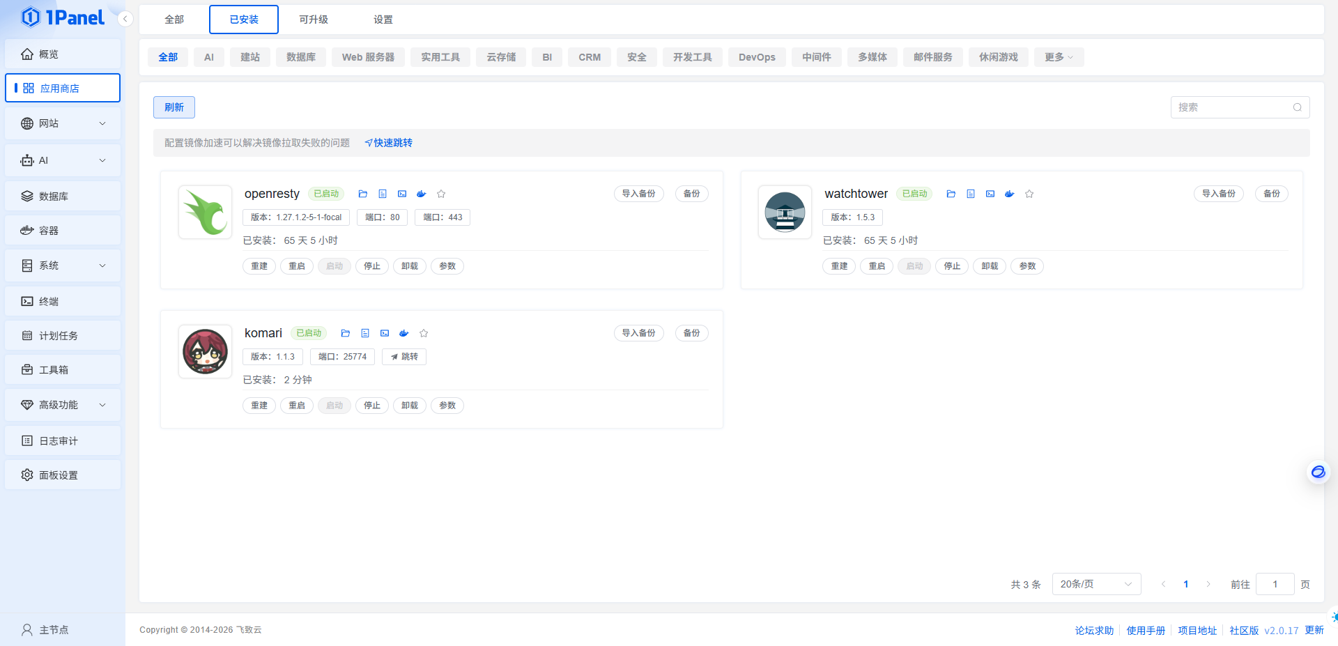 bash -c "$(curl -sSL https://1panel.komari.wiki/install.sh)"