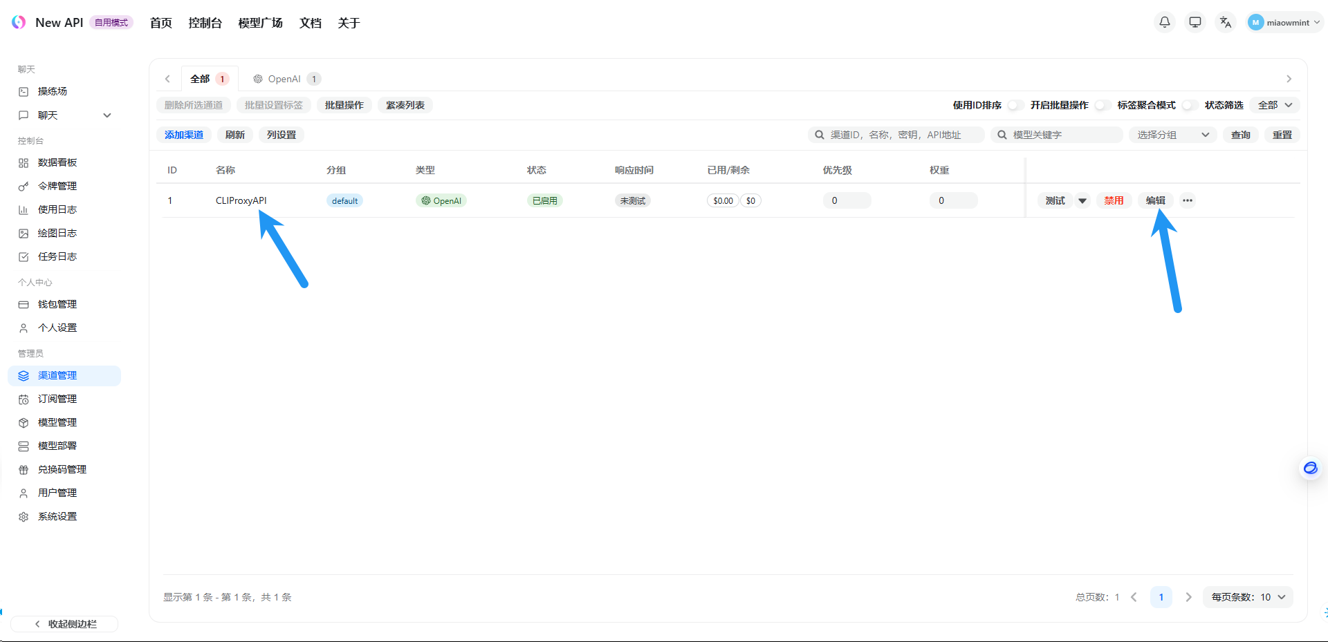 可以看到我们刚刚添加的渠道,点击编辑