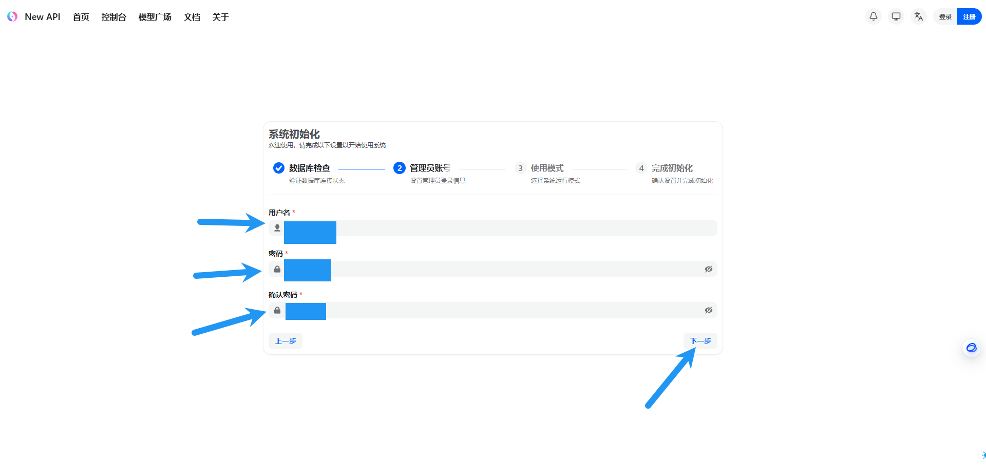 设置管理员账号密码,点击下一步