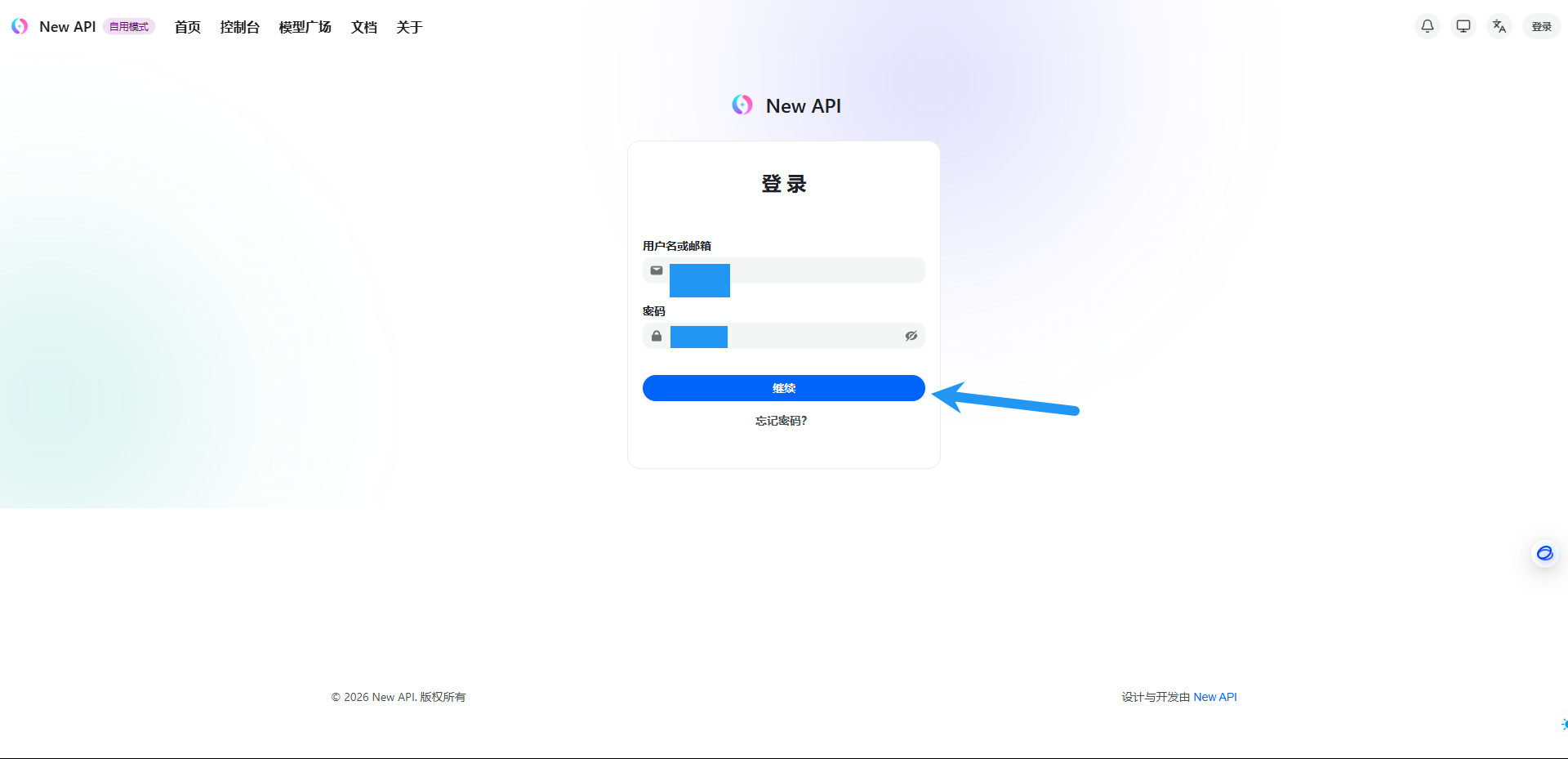 输入刚刚设置的账号密码,点击继续