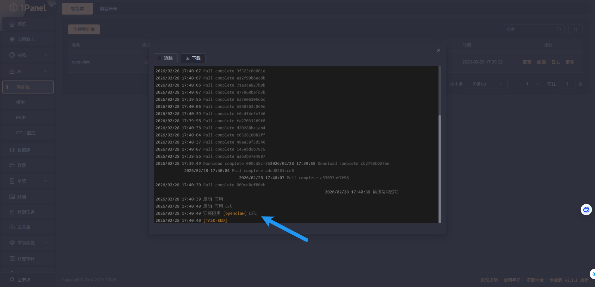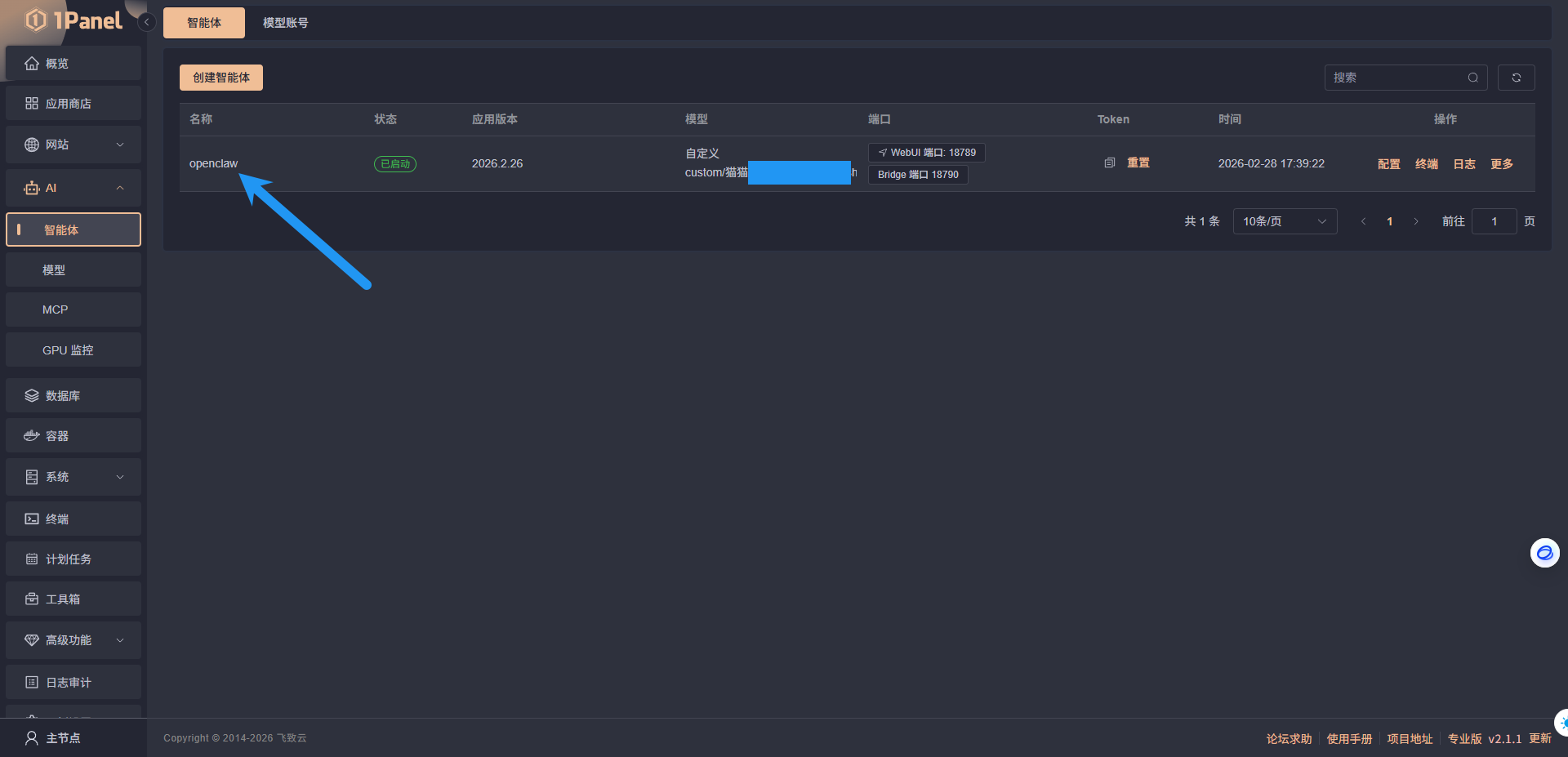 本文基于 1Panel v2.1.1 版本以及 OpenClaw-20260226 版本