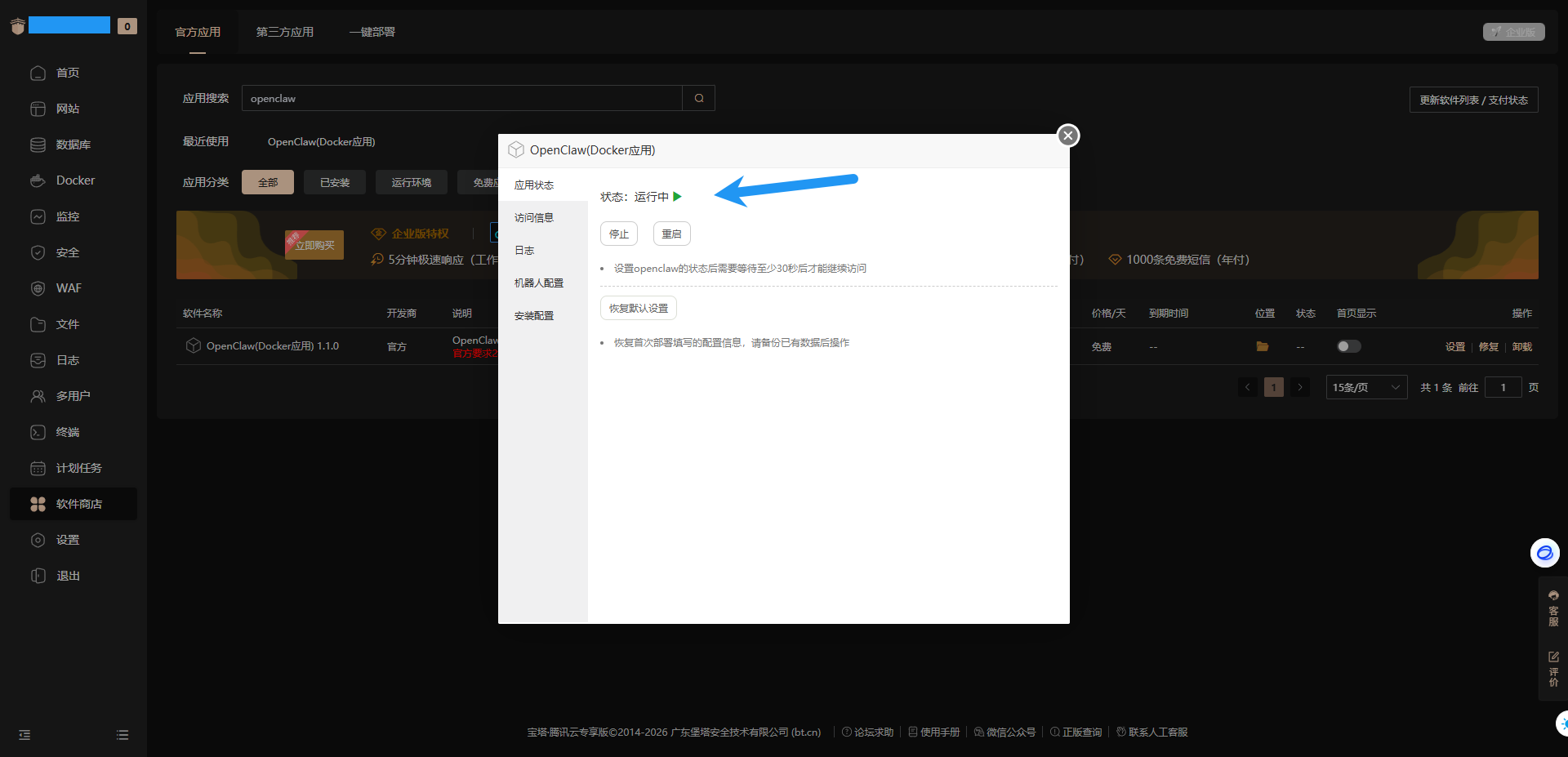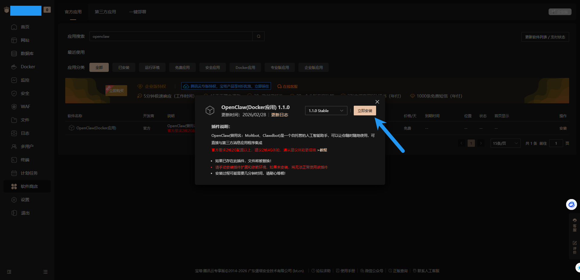 本文基于 宝塔面板v11.5.0 版本以及宝塔面板插件 OpenClaw v1.1.0 版本