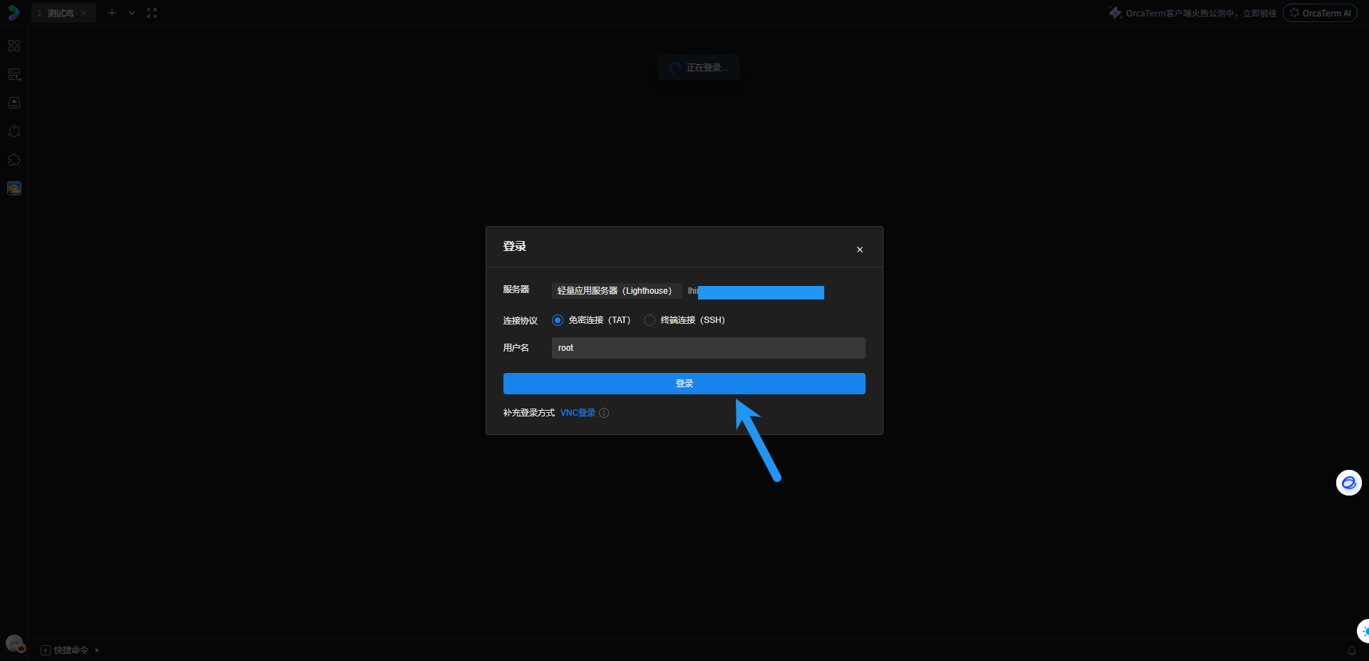 首先使用SSH连接服务器(如果是腾讯云服务器可以在控制台直接点击 登录 使用腾讯云OrcaTerm免密连接服务器)