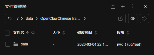 可以看到 /data/OpenClawChineseTranslation 下出现了data文件夹