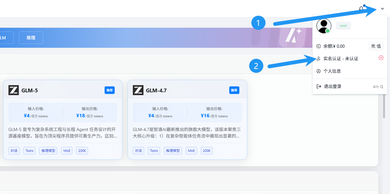进入控制台,点击右上角,点击实名认证
