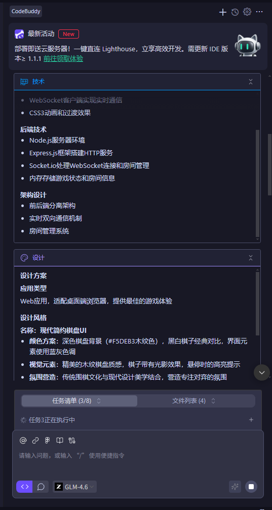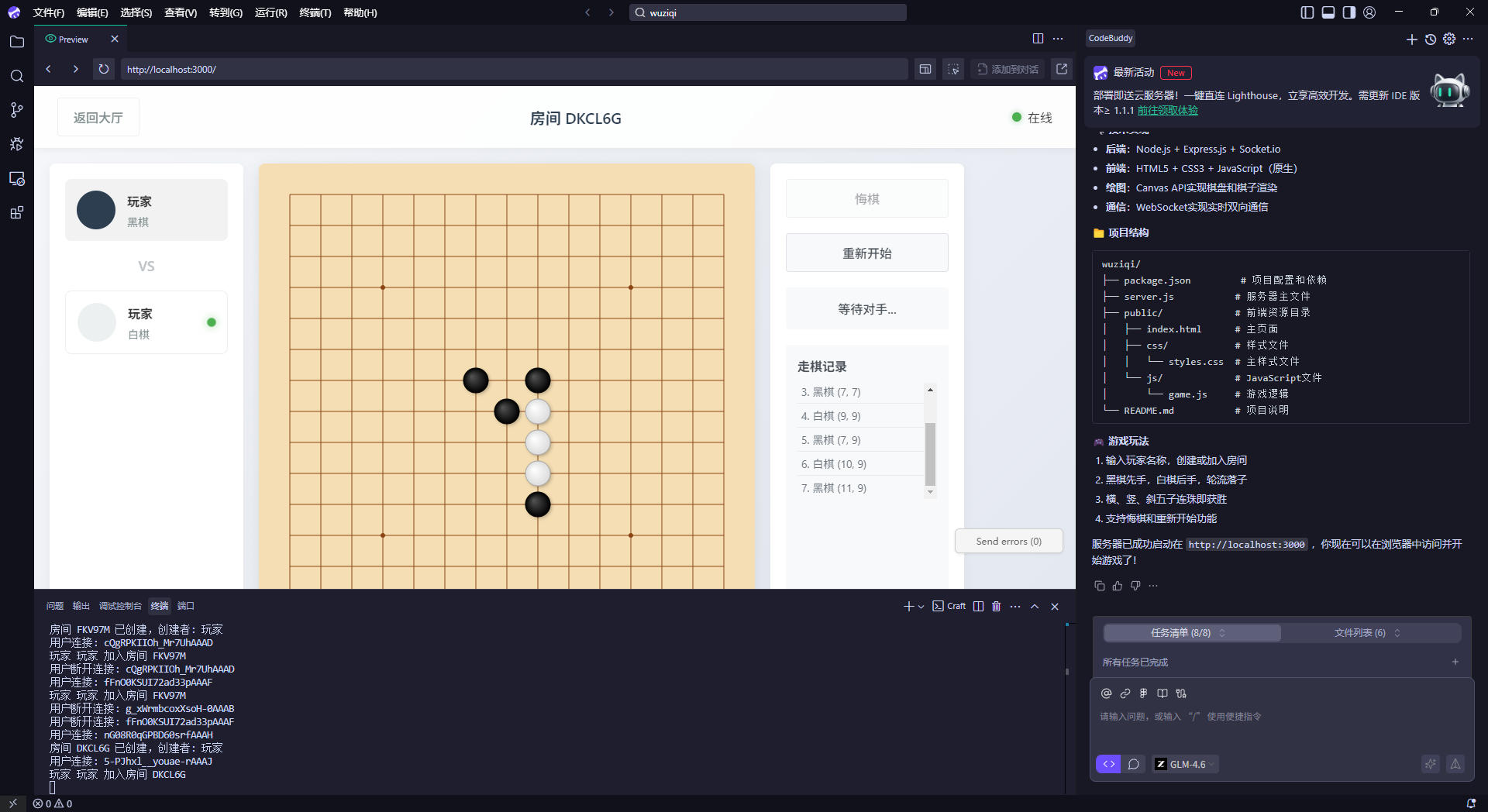 但是这些,其实和提示词 还有模型的能力也是有很大的关系的,毕竟我们只是简单的说了一句开发五子棋,相信如果我们在说提示词的时候就把这些功能细节加入进去,肯定会写出更好的项目
