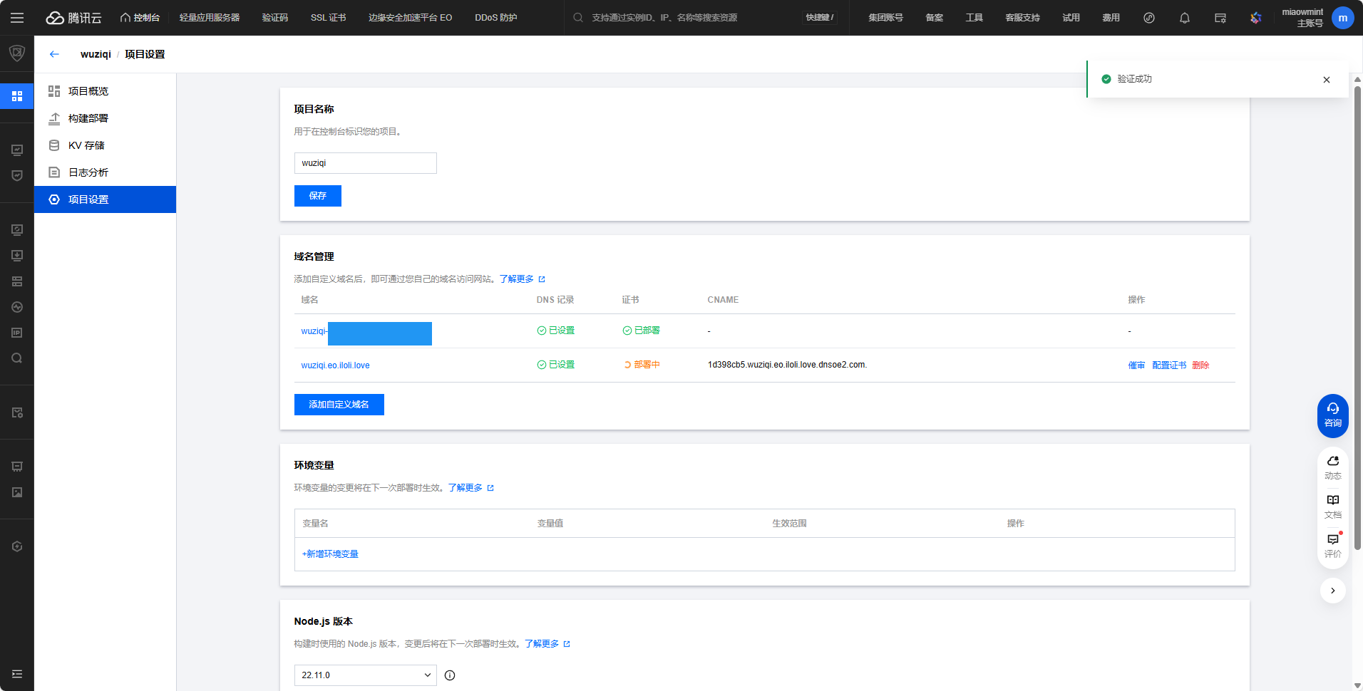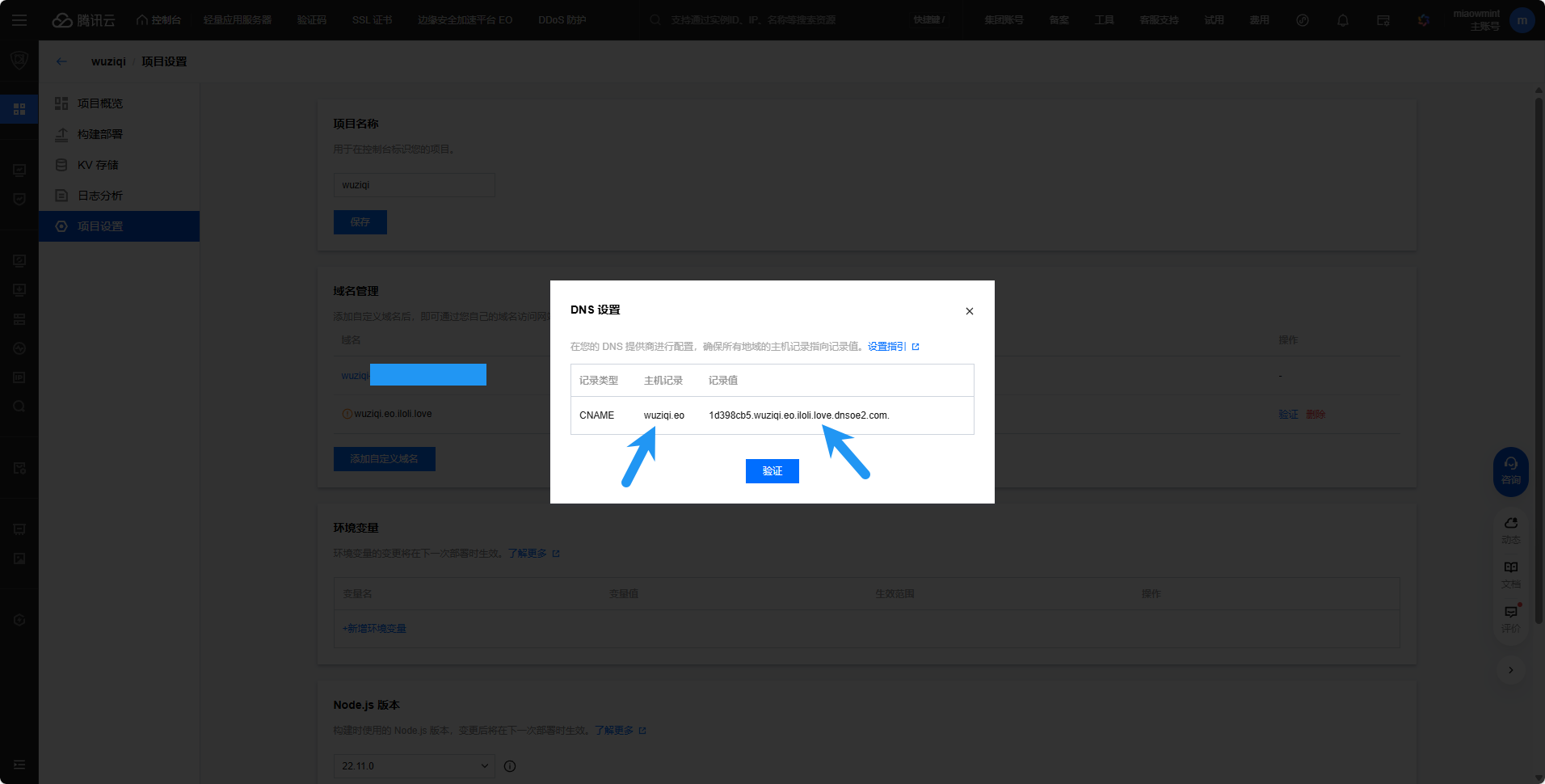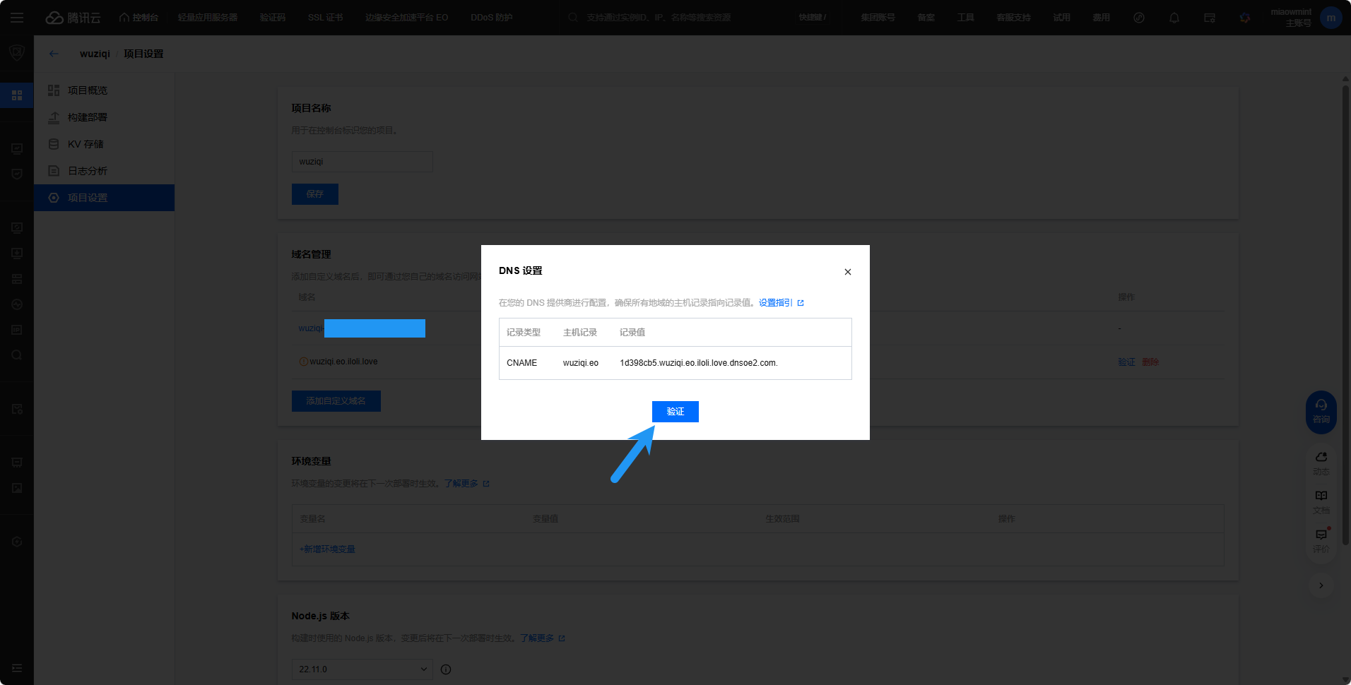 回到这边的控制台,点击验证(如果不通过可以检查一下有没有解析错,或者等待一会再次验证)