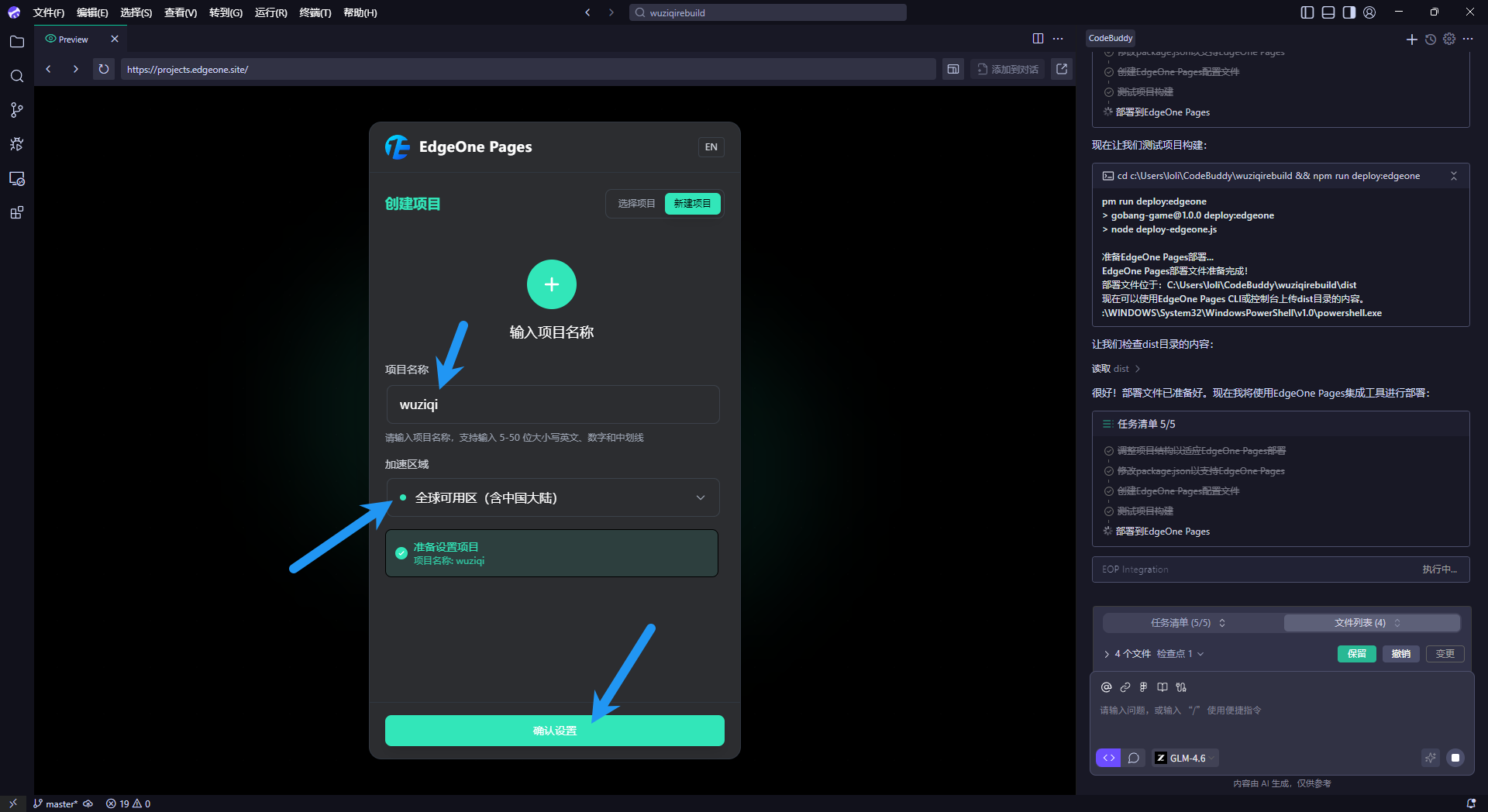 5. 将项目一句话部署到腾讯云 EdgeOnePages