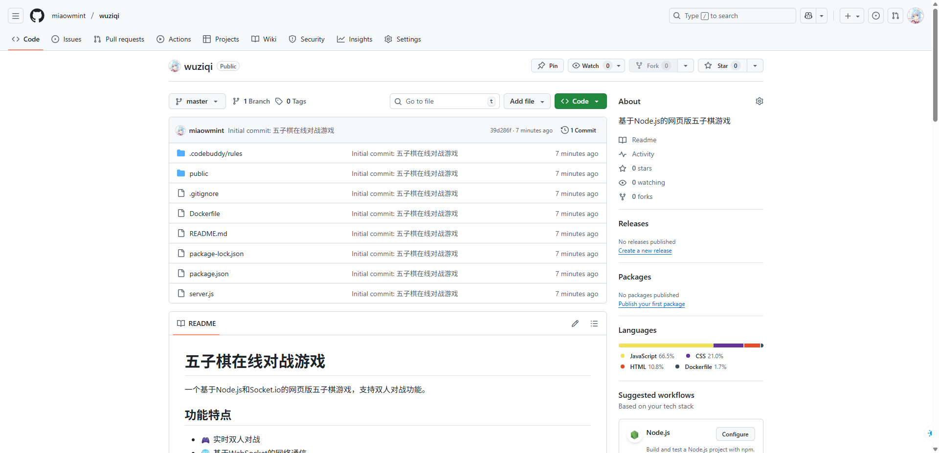 访问 https://cnb.cool/laitehaosi/wuziqi ,嗯,可以,Push成功了