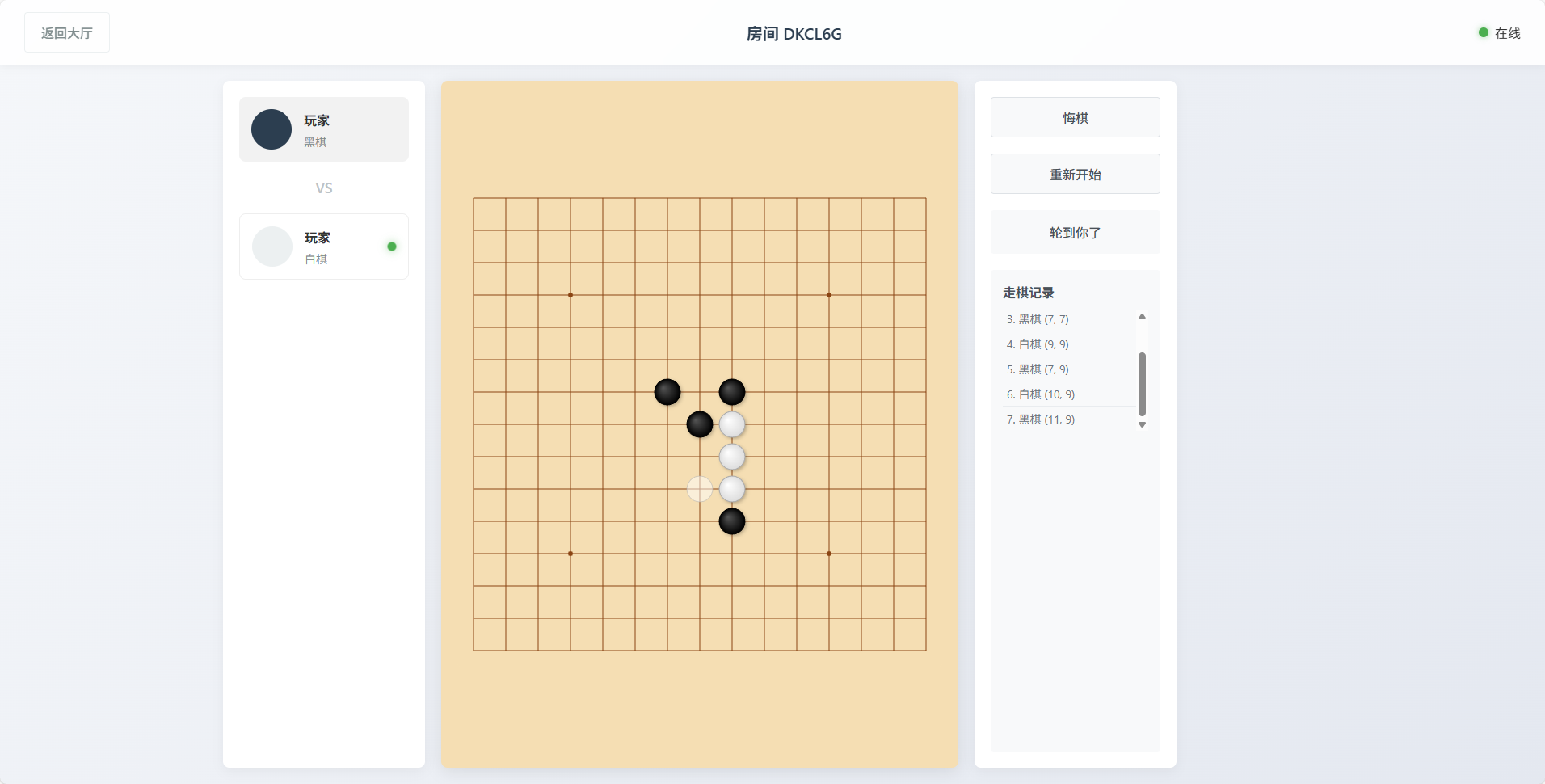 如果你也跟着我的文章部署了,那么可以访问你自己绑定的网站;或者也可以访问我部署的网站 https://wuziqi.eo.iloli.love/ ,就可以游玩刚刚写的五子棋游戏了
