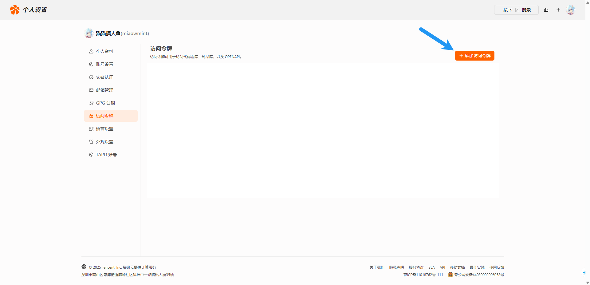 访问 https://cnb.cool/profile/token ,开始添加访问令牌(密钥)