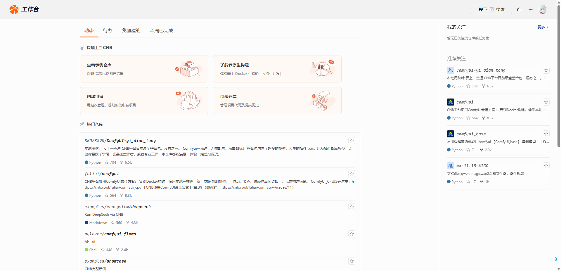 CNB:云原生构建,类似于github的代码托管平台,但是可以白嫖配置很高的云原生开发容器环境(最高64C128G的EPYC 9K65,以及共享GPU算力)