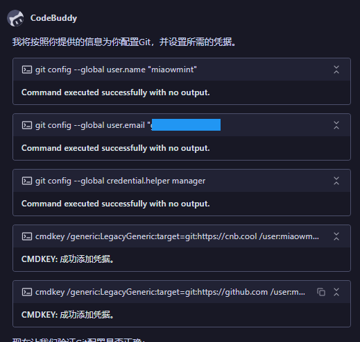 cmdkey /generic:LegacyGeneric:target=git:https://github.com /user:YOUR_GITHUB_USERNAME /pass:YOUR_GITHUB_TOKEN因为运行的命令和上面的是一样的, 所以这里就不放图了