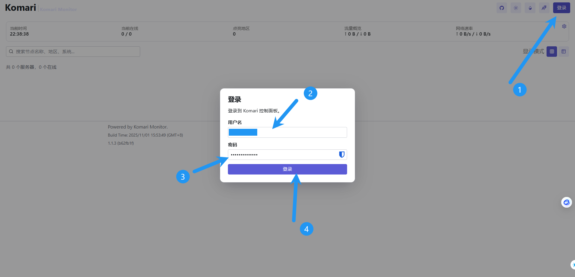Komari 是一个服务器监控/探针面板,github地址为 https://github.com/komari-monitor/komari
