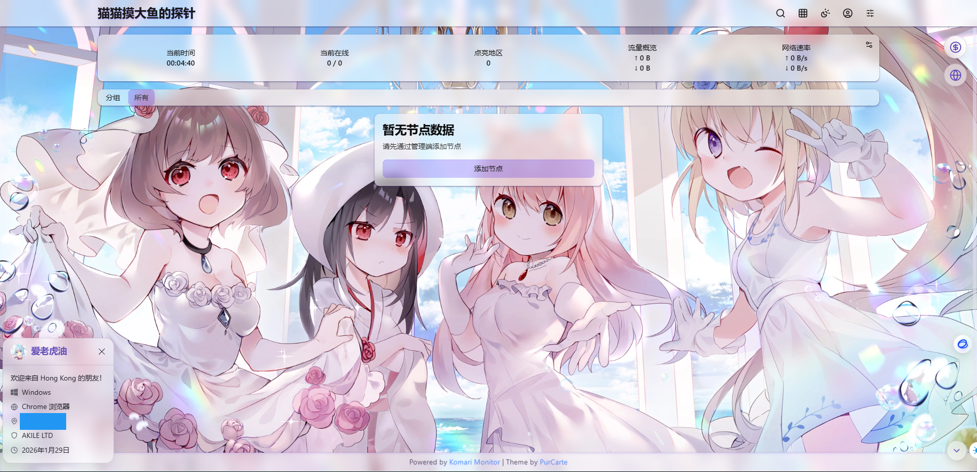 本文基于 Komari 1.1.3 版本,Purcarte主题 1.2.5 版本,KomariBeautify 0.4.2 版本