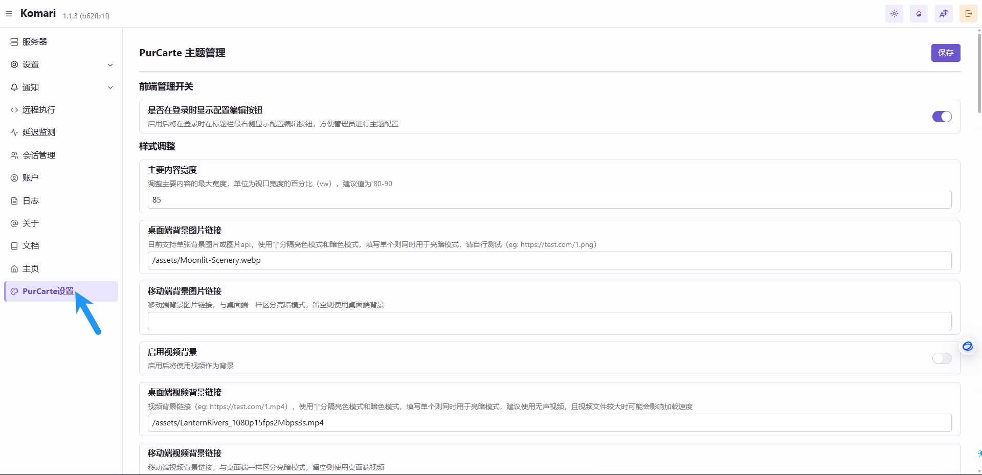 3.3 (可选)配置KomariBeautify - 基于PurCarte主题的自定义代码