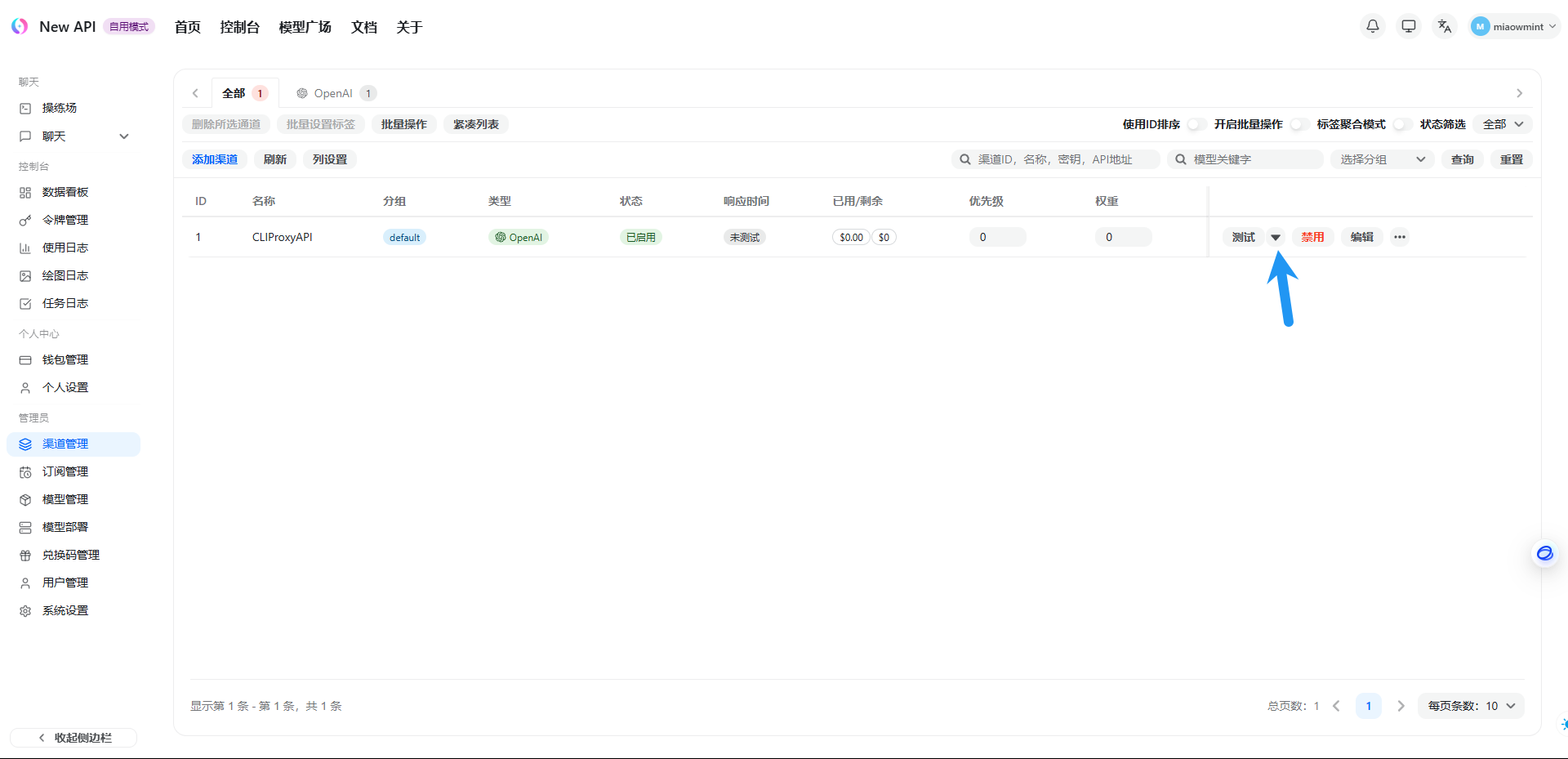 到此已经完成,可以使用该密钥了,BaseURL 即为你的服务器IP:项目端口,该项目可以聚合更多大模型 API ,统一直接供给 OpenClaw 使用,这里就不过多赘述了