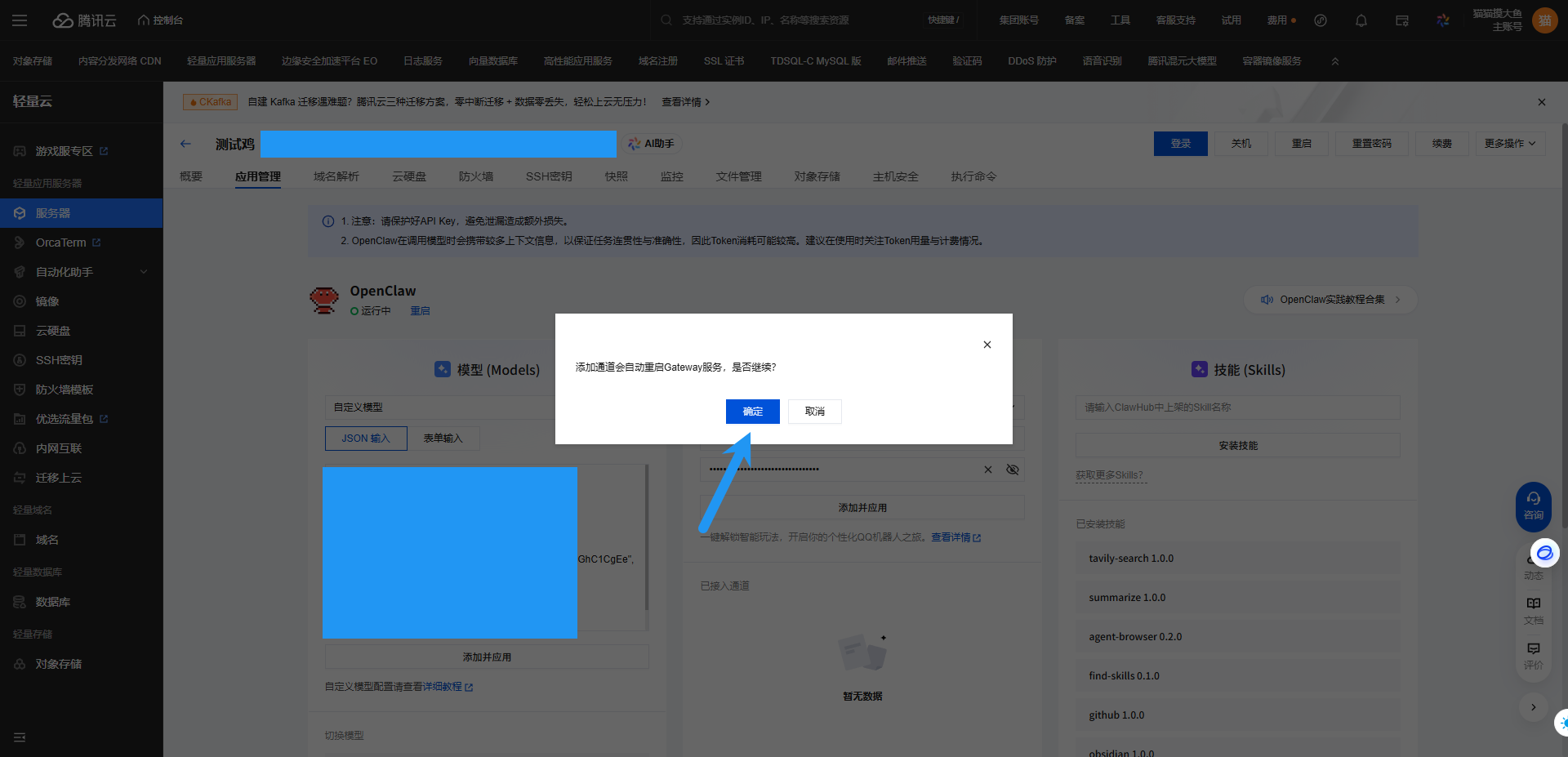 3.2 通过腾讯云控制台配置 模型API 和 QQ 通道
