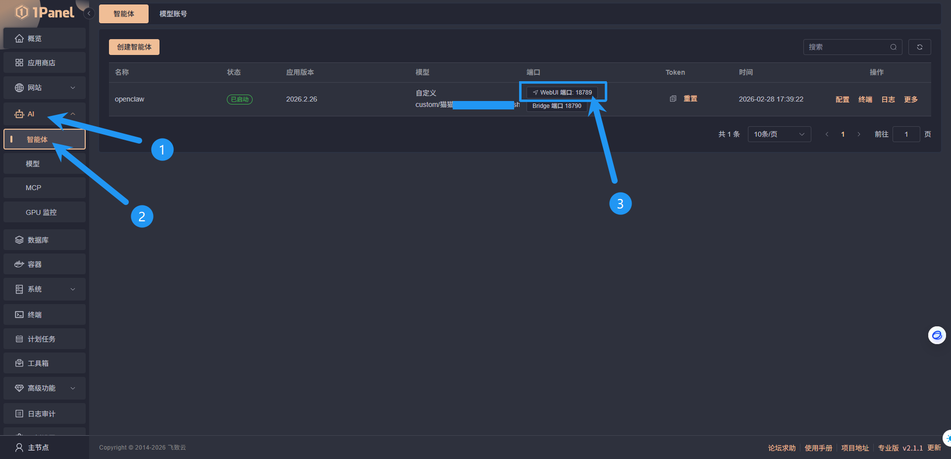 本文基于 1Panel v2.1.1 版本以及 OpenClaw-20260226 版本