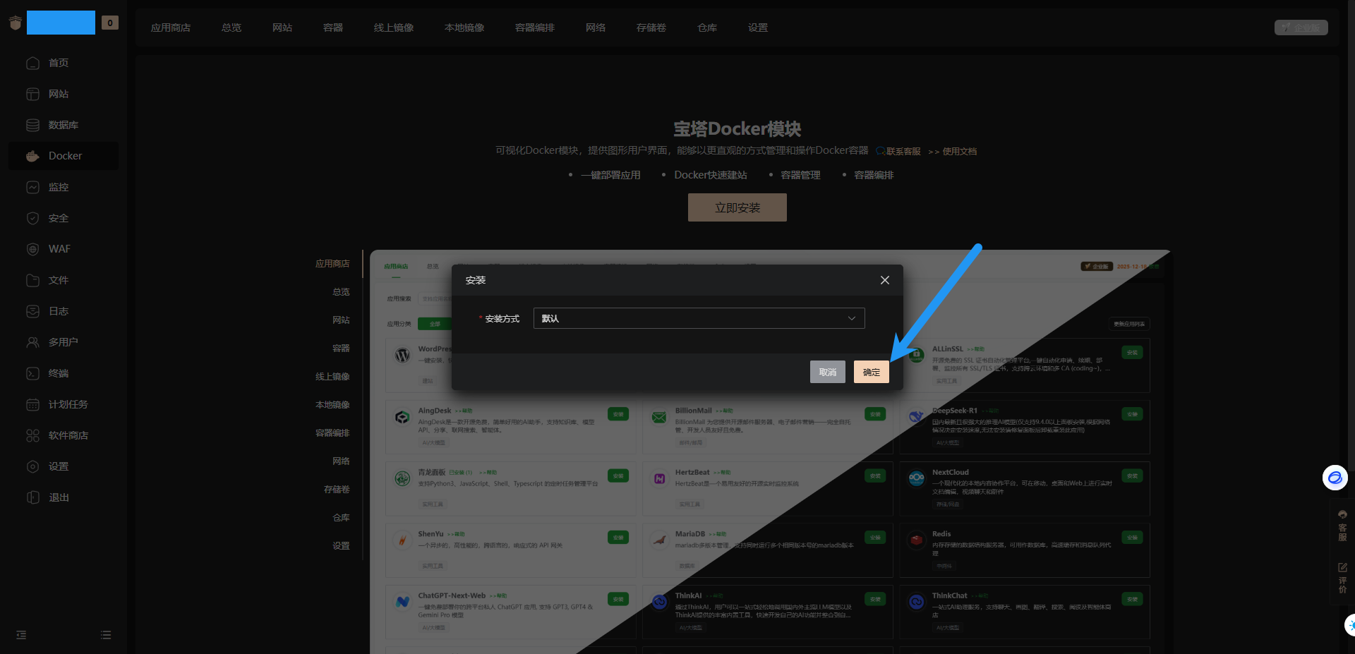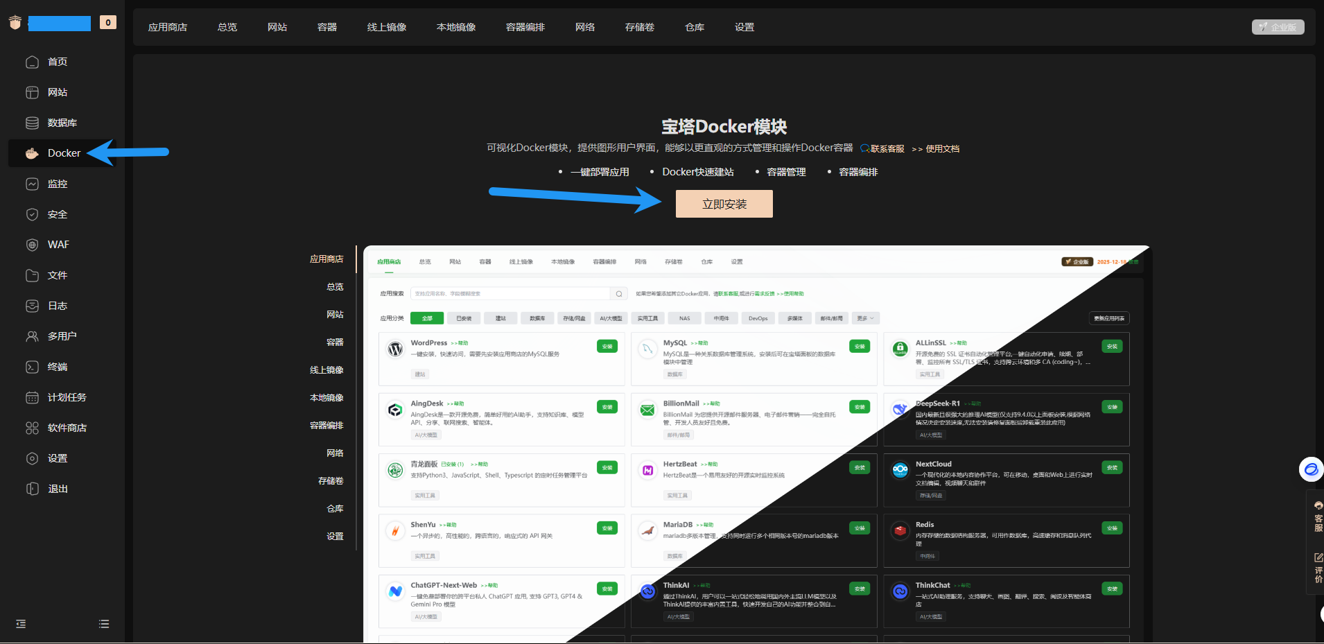 本文中安装的是由 BTPanel 构建的 Docker 版本,非官方直装版本