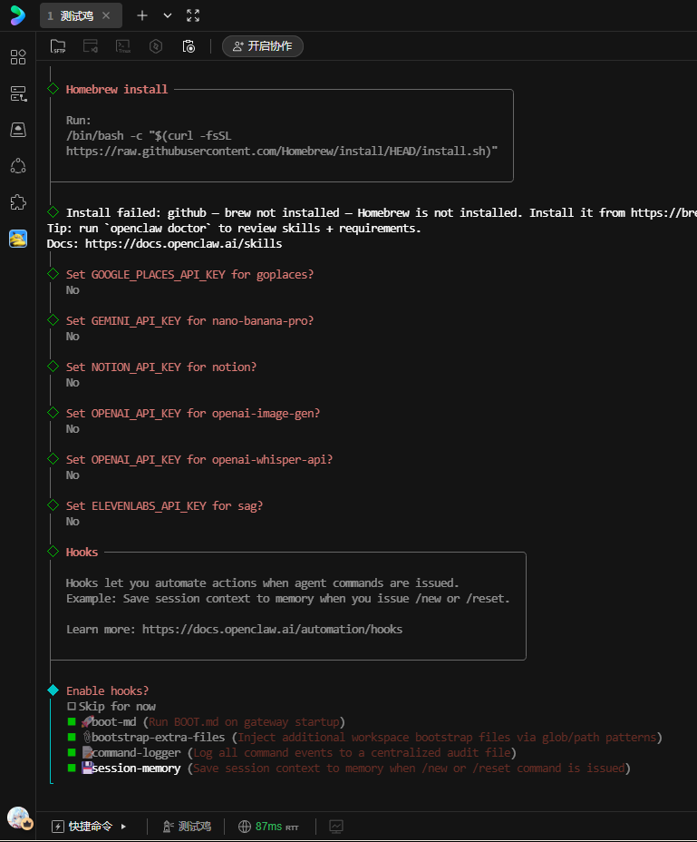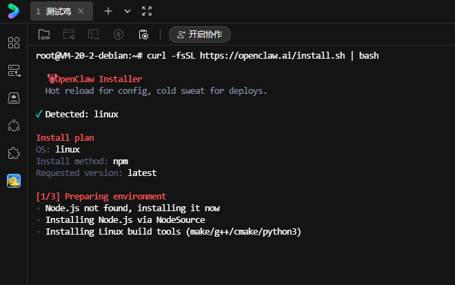 没写完,不想写了,留坑 使用官方一键脚本搭建OpenClaw图文教程