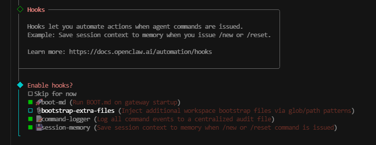 接下来选择钩子,按需勾选,然后回车