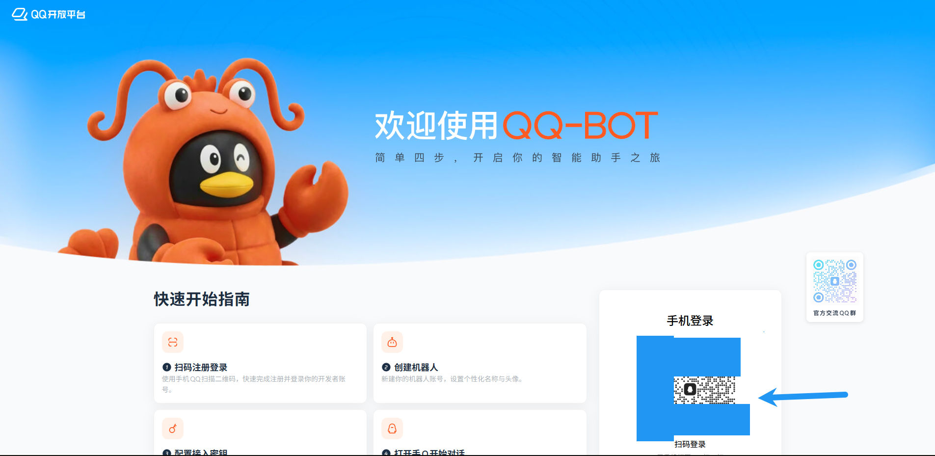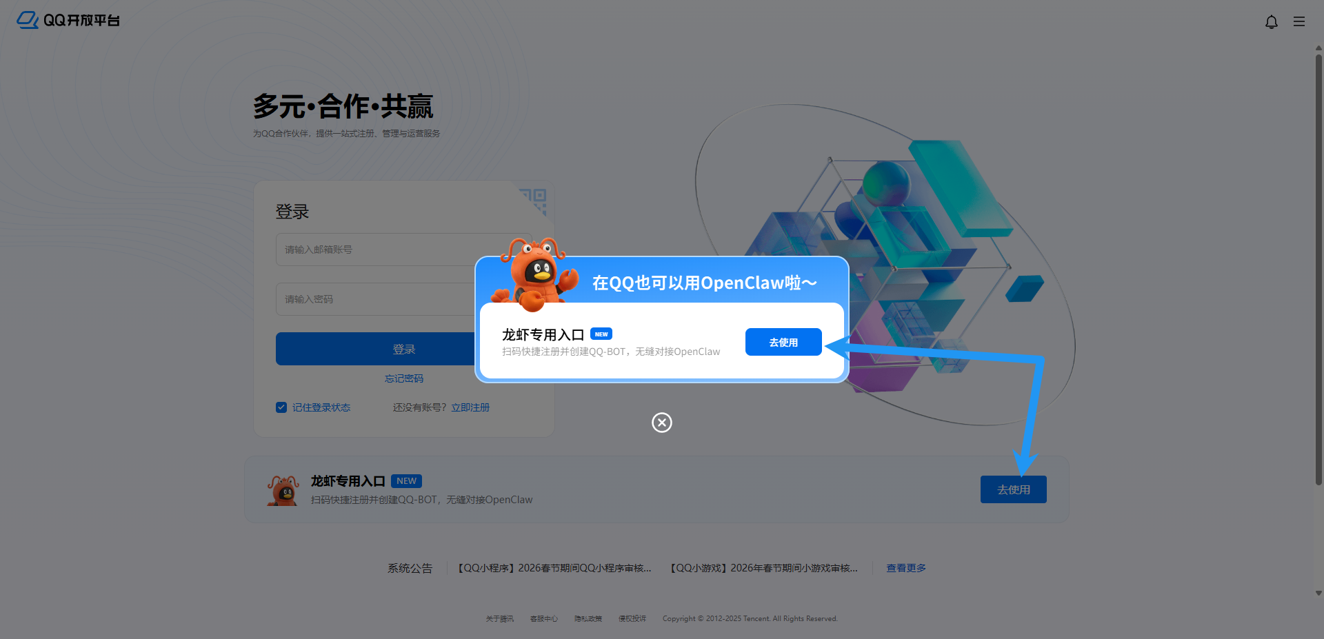 点击访问 QQ 开放平台 https://q.qq.com/ ,点击如图任意一个去使用
