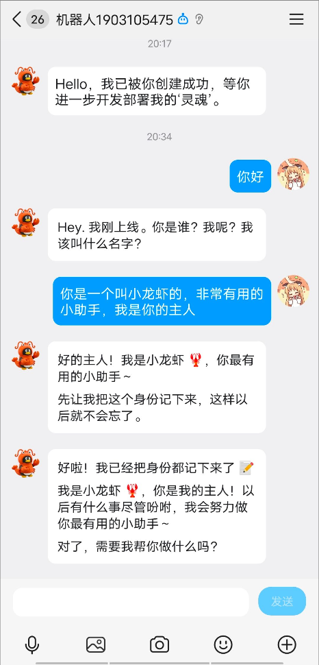 可以看到,小龙虾已经能够对话了,部署正式完成了